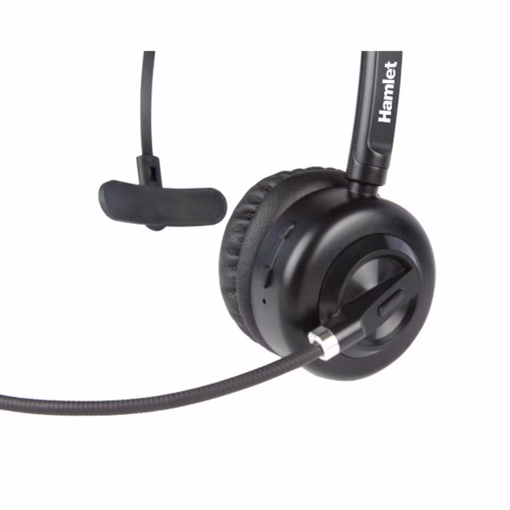 Hamlet Renova Headset modello BTM è una cuffia professionale monoaurale Bluetooth con microfono che consente la comunicazione senza fili e a mani libere con Computer, Notebook, Smartphone e Tablet. È la soluzione ideale per videoconferenze e chiamate vocali via internet tramite applicazioni come Skype , Zoom, NetMeeting. Renova Headset BTM ha un design confortevole grazie all'archetto regolabile e al morbido auricolare in similpelle imbottito per attutire i rumori con pulsanti di accensione e regolazione del volume integrati. Il microfono unidirezionale, dotato di riduzione dei rumori di fondo, offre una ottima qualità della voce e può essere ruotato di 270 gradi per il posizionamento a sinistra o a destra. La base di ricarica magnetica permette di riporre comodamente la cuffia e ricaricare senza cavi la batteria di cui è dotata.caratteristiche