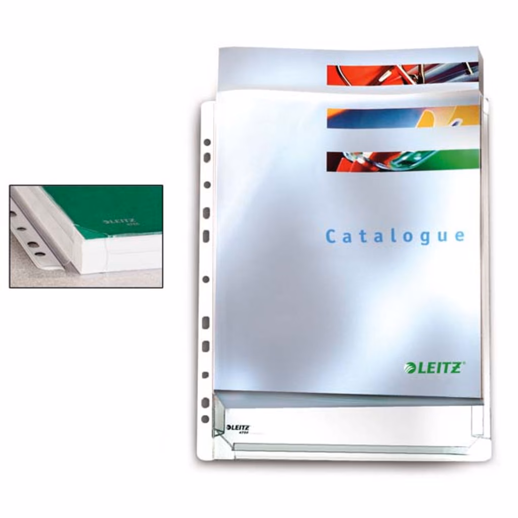 La piega espandibile da 20 mm consente un'archiviazione perfetta di documenti di grandi dimensioni e cataloghi. Ideale per registratori con meccanismo a leva e raccoglitori. Adatta a capacità elevate di 200 fogli formato A4 (80 g/m²). Foglio in plastica morbida goffrata da 0,17 mm di spessore estremamente durevole. Durevole grazie alla protezione anti-strappo. Apertura superiore. Perforazione a 11 fori per utilizzo universale.