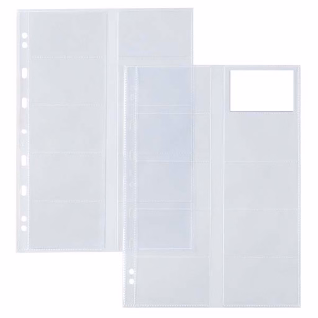 Buste porta biglietti da visita con foratura universale in PP liscio. Dotate di 10 spazi per la raccolta di biglietti da visita 6,3x9,4 cm