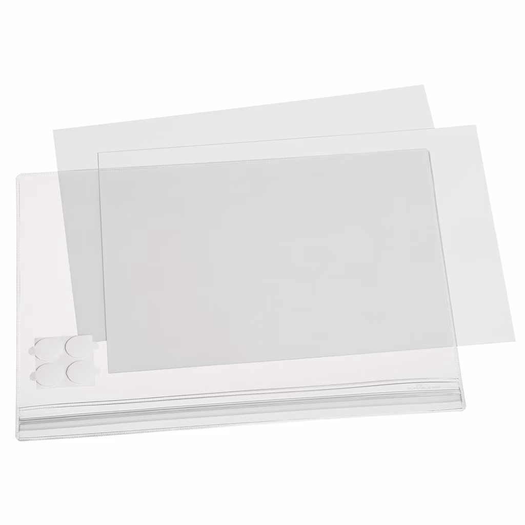 Buste impermeabili ideali per esporre informazioni in aree esterne come parchi, cantieri, piscine oppure su cancelli e bacheche, dove i documenti possono entrare a contatto con spruzzi dacqua. La chiusura ermetica a pressione protegge il contenuto della busta in particolare da pioggia, umidità e sporco. Adesive: applicabili tramite punti adesivi inclusi nella confezione, rimovibili senza lasciare residui. Testate secondo lo standard IPX5 (protezione contro i getti dacqua provenienti da tutte le direzioni). Trasparenti, con stabilizzatore UV e resistenti agli eventi atmosferici, antigraffio e con effetto antiriflesso. Possono essere utilizzate sia in formato verticale sia in orizzontale. Sostituzione degli inserti facile e veloce. Capacità 2 fogli A4 da 160 g/m² inclusi nella confezione. Disponibile nella versione A4 ed A3.