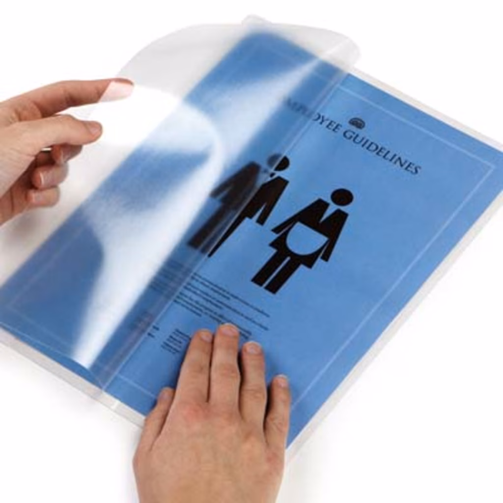 Buste trasparente per plastificare con semplicità e senza l'uso di alcuna macchina - dotata di retro adesivo per aderire a tutte le superfici lisce e solide: può essere rimossa e riposizionata con facilità - ideali per proteggere da polvere e danni involontari e per dare un aspetto professionale ad attestati, menù, avvisi, fotografie, e tutti i documenti fino al formato A4.