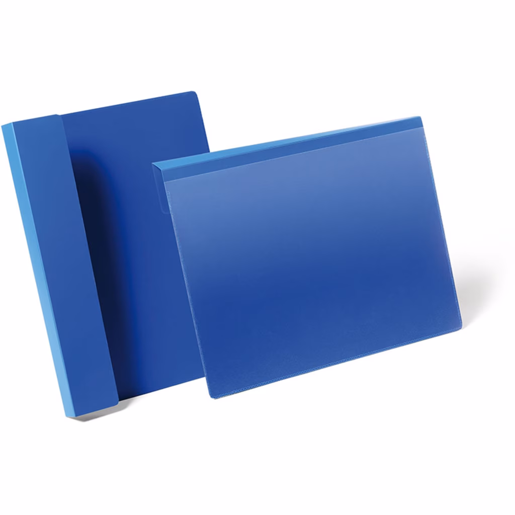 Tasche identificative per magazzino e logistica, con aletta pieghevole, specificatamente progettate per l'identificazione di pallet e cartonati - possono essere inserite tra i cartoni impilati o agganciate ai singoli pallet (la busta rimane appesa all'esterno del pallet o dei cartoni) - proteggono da sporco e polvere i documenti inseriti - retro in plastica blu e copertina frontale trasparente in polipropilene molto resistente - adatte all'uso con scanner e antistrappo - facile sostituzione dell'inserto - è possibile realizzare inserti personalizzati grazie al software gratuito online DURAPRINT® collegandosi al sito www.duraprint.it