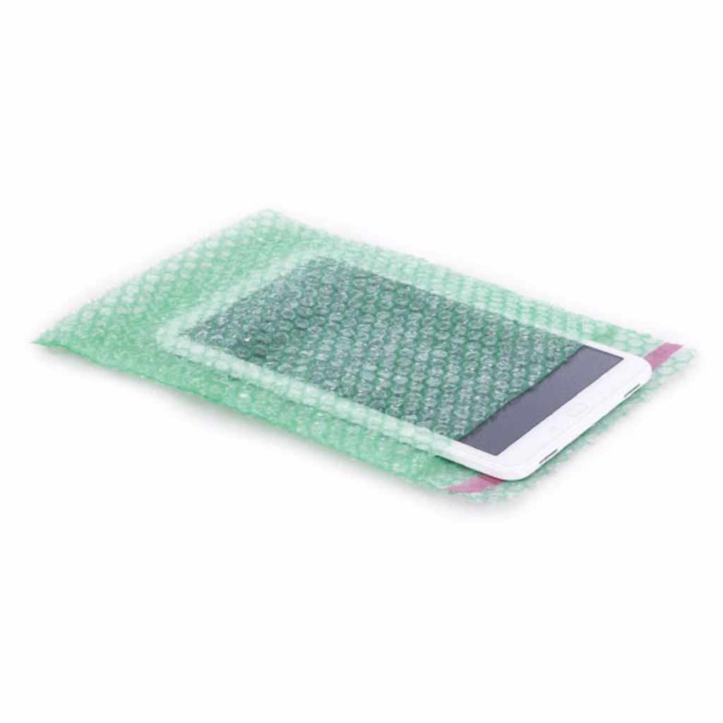 Sacchetti a bolle d'aria (pluriball) dotati di chiusura adesiva pratica e veloce - colore verde trasparente per permettere l'identificazione del contenuto - diametro bolla 10 mm - altezza bolla 4 mm - per proteggere dagli urti e spedire oggetti delicati di piccole e medie dimensioni - qualità triplo strato film da 82 g/m², elevata resistenza alla perforazione