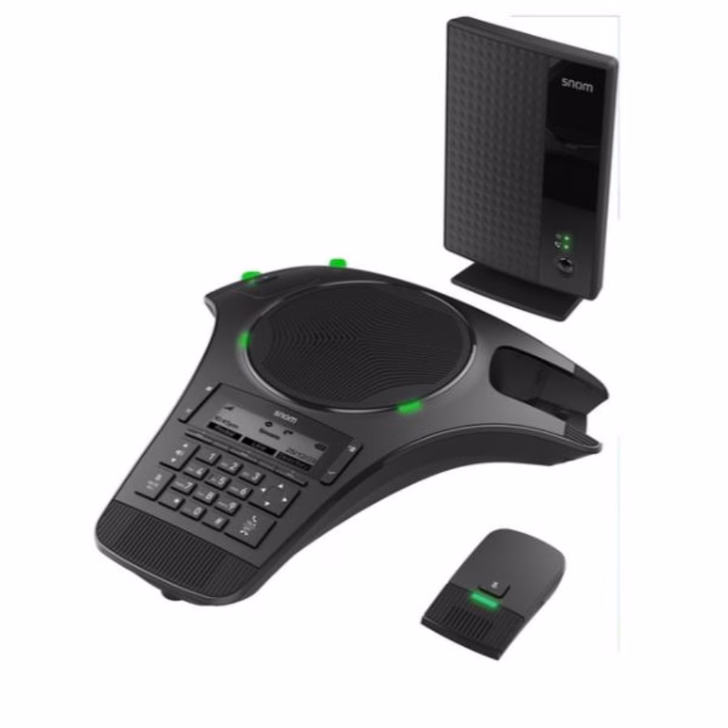 Liberatevi dai fili della sala conferenze e aiutate il vostro team a collaborare meglio. Il telefono per conferenze wireless Snom C620 utilizza la tecnologia DECT 6.0 per un'esperienza di conferenza completamente wireless. Il sistema comprende una base SIP DECT e una docking station per ricaricare il telefono fino a 24 ore di conversazione (o 12 ore per l'audio a banda larga). È sufficiente posizionare i due microfoni wireless negli alloggiamenti di ricarica integrati nel telefono per averli pronti per la prossima chiamata. Il C620 consente una totale libertà di posizionamento nella sala conferenze, senza inciampare nei cavi. Con i microfoni wireless, le frustrazioni saranno minori e le conversazioni più riuscite. Avete bisogno di ospitare una riunione più ampia? Aggiungete facilmente fino a due vivavoce di espansione DECT C52-SP per gestire un maggior numero di partecipanti attivi. Ora voi e il vostro team potrete ascoltare chiaramente, distribuirvi e parlare senza urlare sopra il tavolo.