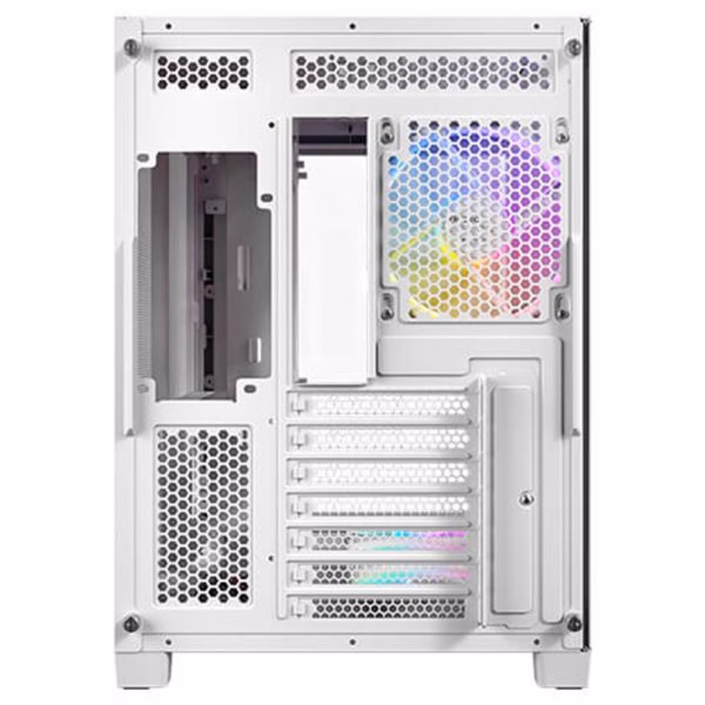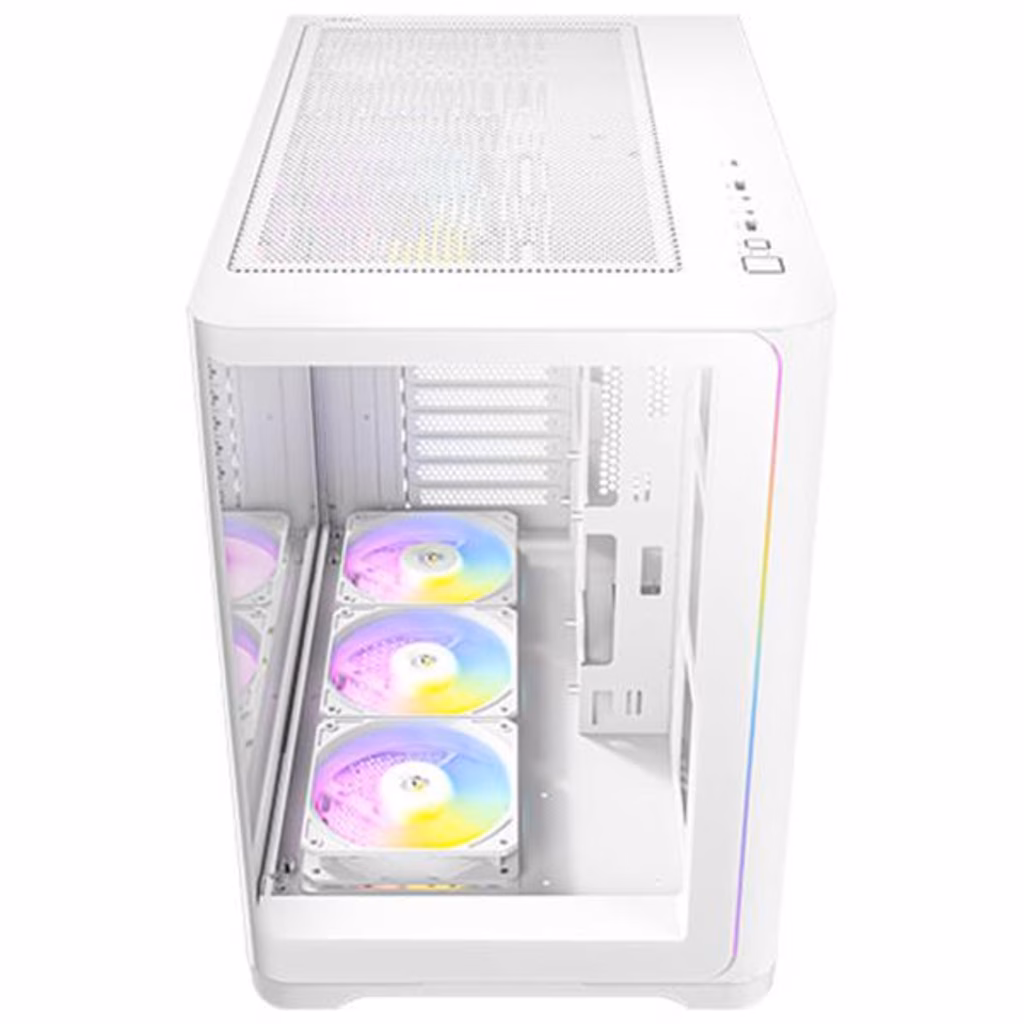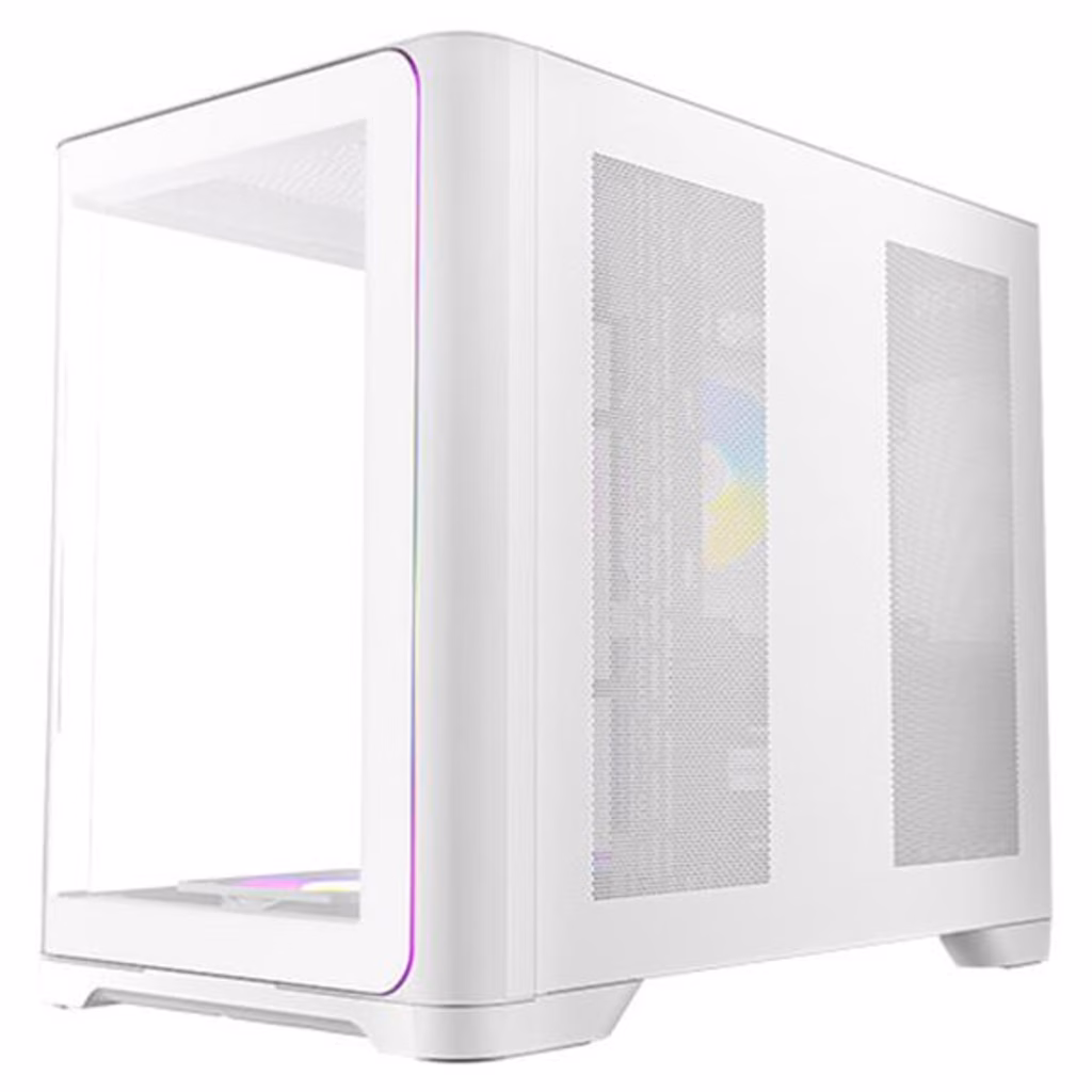 presenta un design a tutta vista in stile "seaside room" con strisce luminose ARGB per un aspetto elegante e trasparente.Design del flusso d aria verticale supporta fino a 10 ventole; il flusso d aria dal basso verso l alto aiuta a espellere rapidamente il calore.Supporta radiatori da 360 mm sia sulla parte superiore che sulla parte inferiore, e un radiatore da 280 mm sul lato destro contemporaneamente.Quando si utilizza un radiatore e una ventola sul lato destro, lo spessore combinato deve essere inferiore a 75 mm per evitare interferenze con la scheda grafica.Durante il montaggio push-pull del radiatore sulla parte superiore, l altezza della RAM deve essere inferiore a 35 mm per evitare interferenzeInclude tre ventole PWM ARGB da 120 mm a pale invertite (P12 R) nella parte inferiore, una ventola PWM ARGB da 120 mm (P12) sul retro e un controller PWM ARGB 8+8.Dotato di una porta USB Type-C 3.2 Gen 2 per trasferimenti dati ad alta velocità.Gabbia HDD removibile supporta un HDD da 3,5" all interno e due SSD da 2,5" all esternoFiltro antipolvere magnetico superiore con linguetta di estrazione e filtro antipolvere magnetico inferiore permette il passaggio dell aria mantenendo fuori la polvere.Design a doppia camera sul lato destro dispone di un alimentatore montato in alto con raffreddamento indipendente e 95 mm di spazio per la gestione dei cavi.Supporta schede madri con connettori posteriori, riducendo significativamente i cavi visibili per un assemblaggio più pulito.