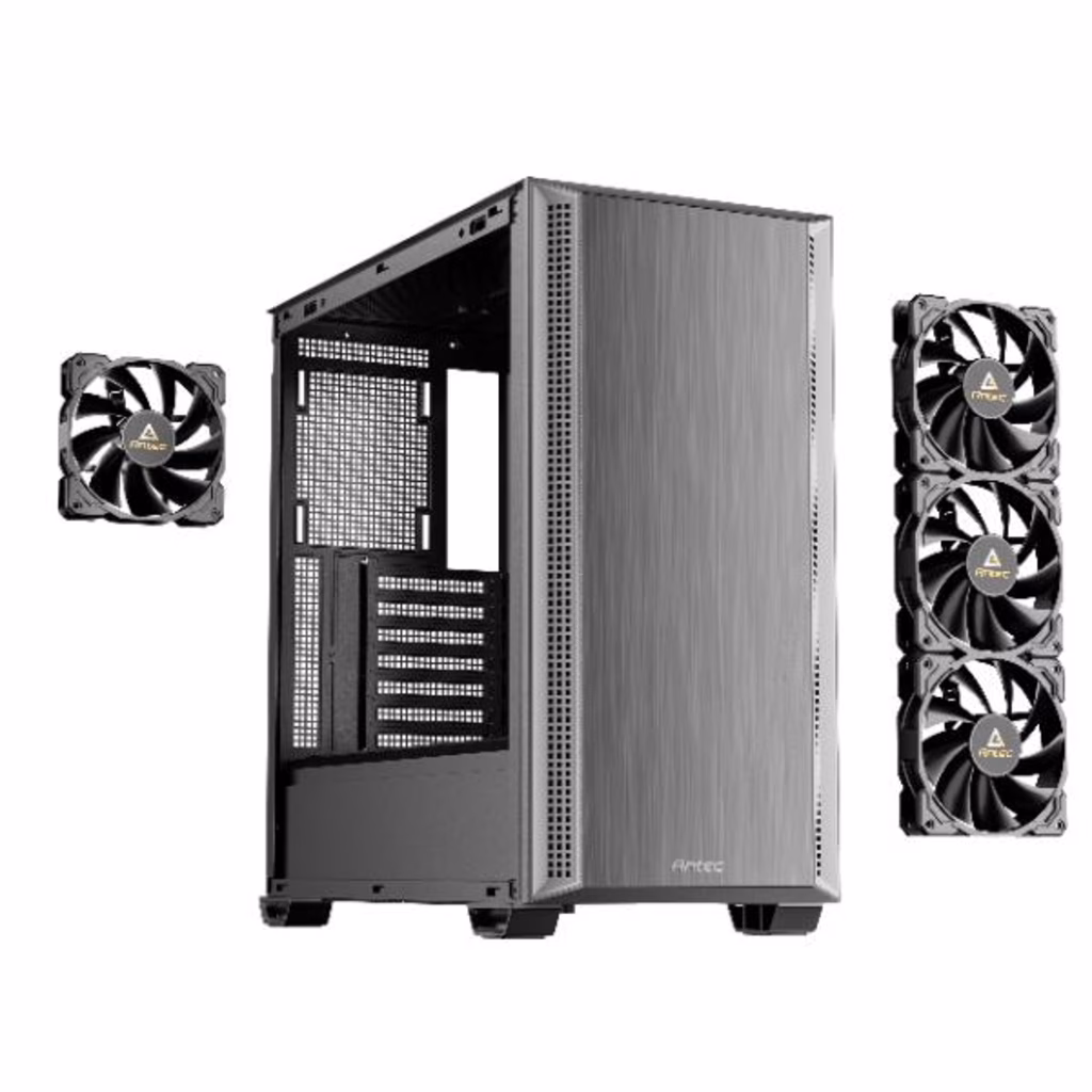 - Preinstallato con 4 ventole PWM collegate a catena (3 × ventole PWM da 120mm sulla parte frontale + 1 × ventola PWM da 120mm sul retro).