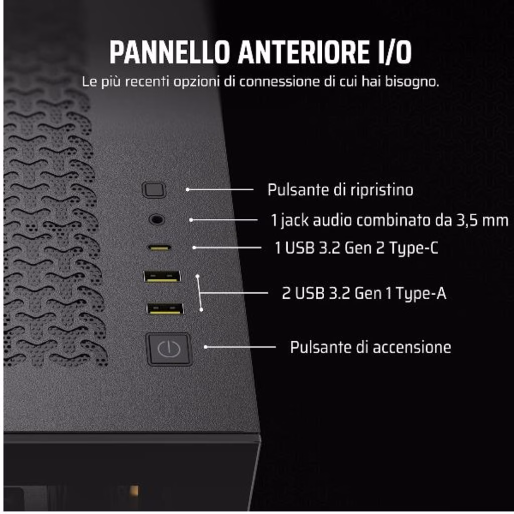 Il case mid-tower CORSAIR 3500X ARGB in vetro offre le caratteristiche più amate dagli appassionati di assemblaggio, combinandole a splendidi pannelli panoramici in vetro, e tre ventole ARGB RS120 preinstallate.