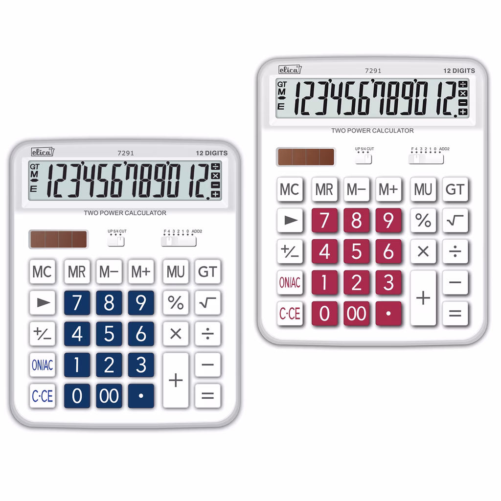 Calcolatrice da tavolo con ampio display a 12 cifre e grandi tasti - munita di pratiche funzioni come il tasto 5/4 e cut, virgola mobile e fissa, tasto correttore, autospegnimento, gran totale, tasto percentuale e tasto radice quadrata - ben salda alla scrivania grazie ai piedini in gomma antisdrucciolo - colori assortiti (tasti blu o rossi) - Gli imballaggi utilizzati per proteggere questo prodotto sono stati realizzati senza l'utilizzo di materiali plastici, contribuendo a ridurre l'inquinamento da plastiche e le emissioni in atmosfera di CO2 e limitando l'ulteriore sviluppo dell'effetto serra