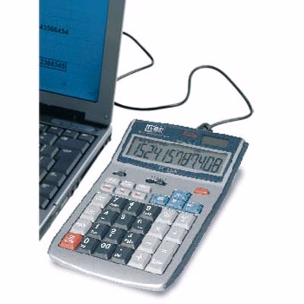 Calcolatrice da tavolo a 12 cifre particolarmente adatta ad essere utilizzata collegata ai notebook come tastierino numerico esterno - 3 porte USB 2.0 - dotata di molte utili funzioni come la virgola mobile, il 5/4 e cut, percentuale, correttore e calcolo prezzi vendita e interessi, costo e margine - inoltre quando è collegata al PC è possibile utilizzare le funzioni di accesso e-mail, trova file e web