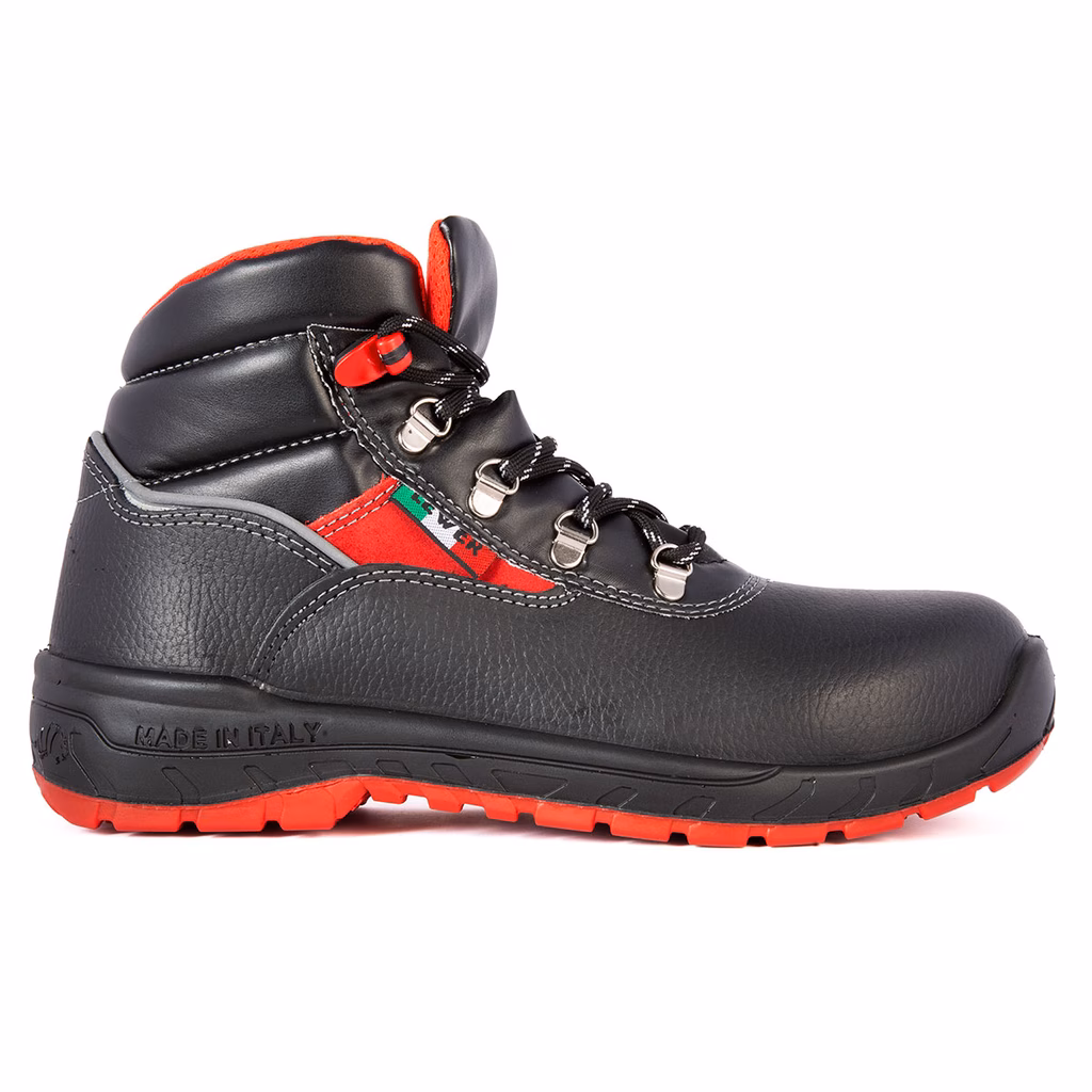 Calzatura di sicurezza alta in pelle fiore con inserto reflex sul tallone - sfilamento rapido - tomaia idrorepellente - fodera in tessuto traspirante e resistente all'abrasione - puntale e lamina in composito - soletta di pulizia termoformata e estraibile su schiuma EVA - suola in poliuretano - calzata comoda e larga (Mondopoint 11) - peso per la mis. 42 g 590 - IDEALE PER INDUSTRIA PESANTE, EDILIZIA, GESTIONE RIFIUTI