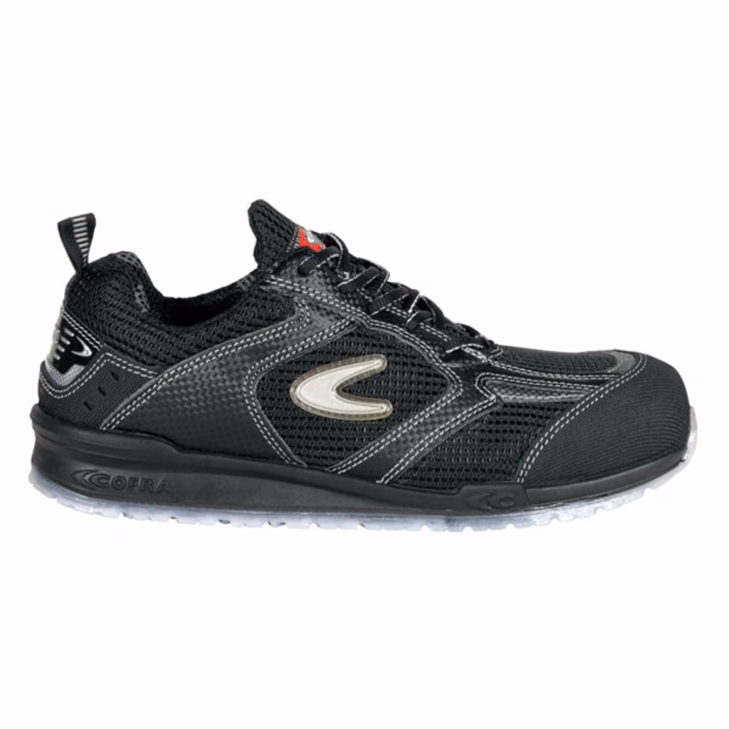 Calzatura S1PS con tomaia realizzata in tessuto BREATEX con tessitura 3D, altamente traspirante e MICROTECH - fodera interna SANY-DRY 100% poliestere, tridimensionale, traspirante, antibatterico, assorbente e deassorbente, antiabrasione - soletta COFRA SOFT, anatomica, antistatica, forata, in poliuretano profumato, soffice e confortevole; il disegno dello strato inferiore garantisce assorbimento dell'energia d'impatto; lo strato superiore assorbe il sudore e lascia il piede sempre asciutto - suola in poliuretano/TPU - puntale in ALUMINIUM 200 J - lamina non metallica APT Plate Zero Perforation