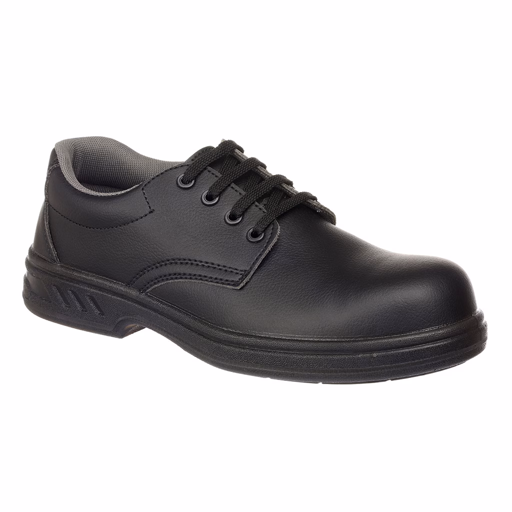 Scarpa di sicurezza con lacci S2 sicura e resistente. Suola auto pulente per prevenire le contaminazion Colletto imbottito per un maggior comfort Tomaia dal design lineare Disponibile in taglie unisex Puntale in acciaio protettivo Calzatura antistatica Tallone con assorbimento energia Tomaia resistente all'acqua per prevenire la pene SRC Suola antiscivolo per evitare scivolamenti Suola resistente ai carburanti e agli oli Suola mono densitè  Certificato CE Marcato UKCA