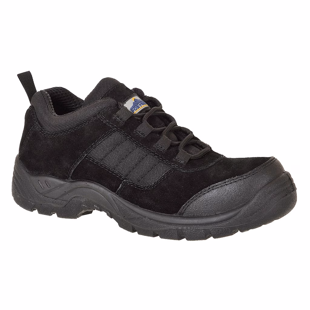 Scarpa Trouper S1 Portwest Compositelite scarpe leggere in colore nero classico. Puntale in antistatiche e suola resistente agli oli rendono q Rete in mesh traspirante 3D 100% metal free Linguetta anteriore e posteriore per una facile c Tomaia in pelle scamosciata e tessuto Colletto imbottito per un maggior comfort Puntale in composito per una maggiore protezione Certificato CE Marcato UKCA Calzatura antistatica Tallone con assorbimento energia SRC Suola antiscivolo per