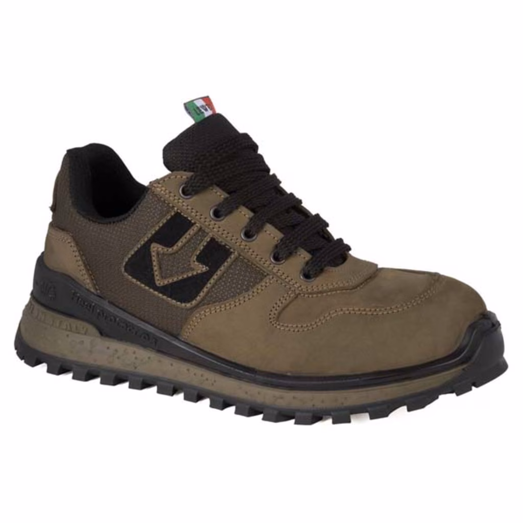 Calzatura bassa in pelle Nabuk - puntale in alluminio - lamina in tessuto e plantare Eva Light - suola tre densità: battistrada in gomma, strato intermedio Air 130 che si estende su tutta la superficie del piede, garantendo comfort ed elevato assorbimento di energia - poliuretano espanso iniettato su tomaia, progettato per una maggiore protezione del tallone, Heel Protection
