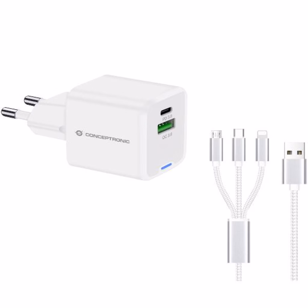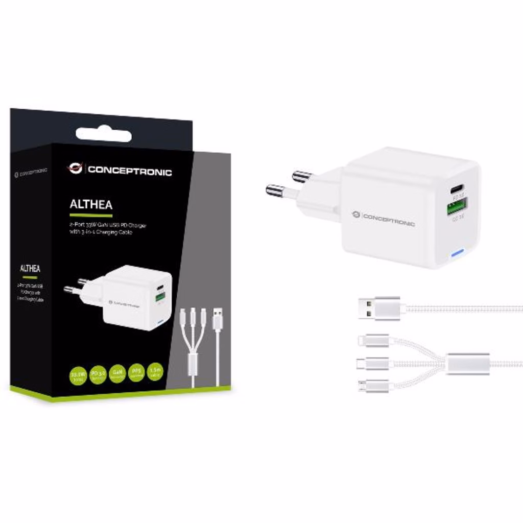 Caricabatterie a 2 porte PD (1x USB e 1x USB-C) con cavo CONCEPTRONIC ALTHEA16W 33W colore bianco