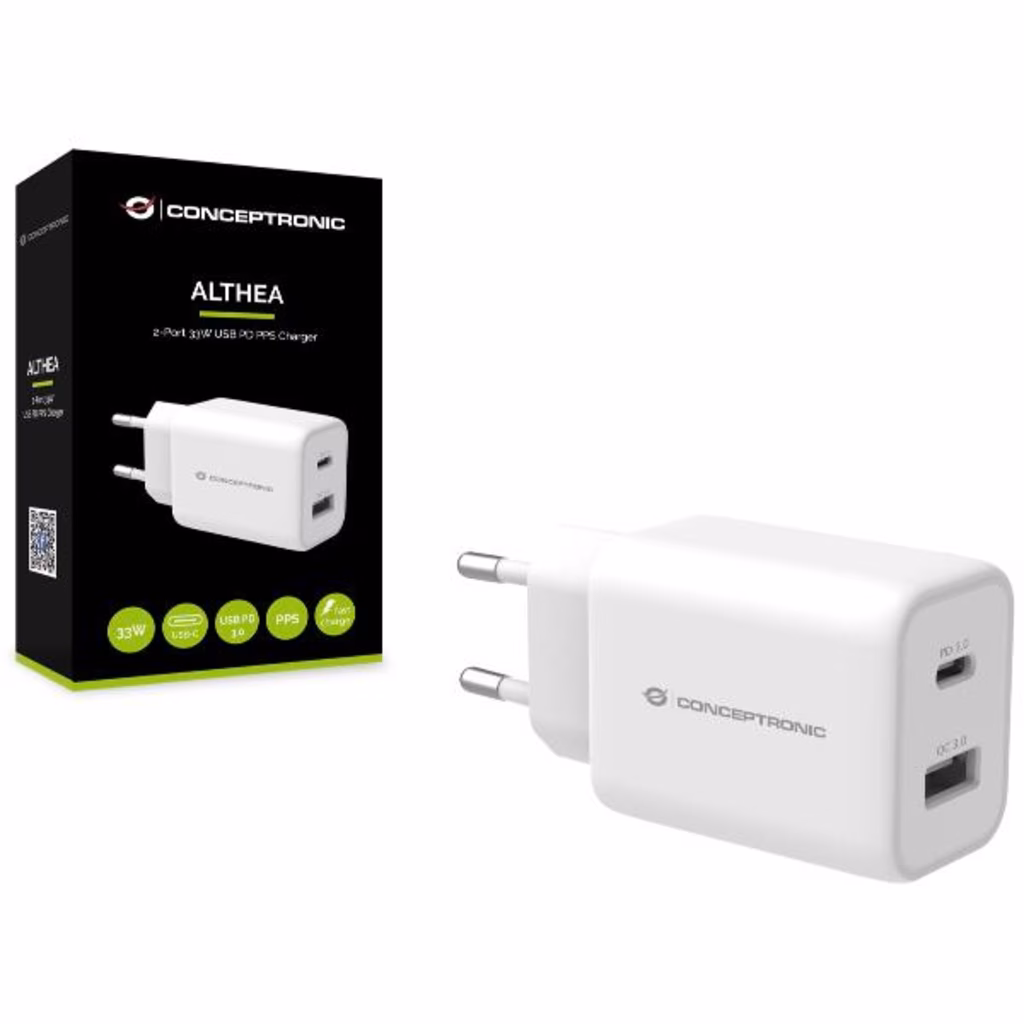 Caricabatterie a 2 porte PD PPS (1x USB e 1x USB-C) CONCEPTRONIC ALTHEA11W 33W colore bianco