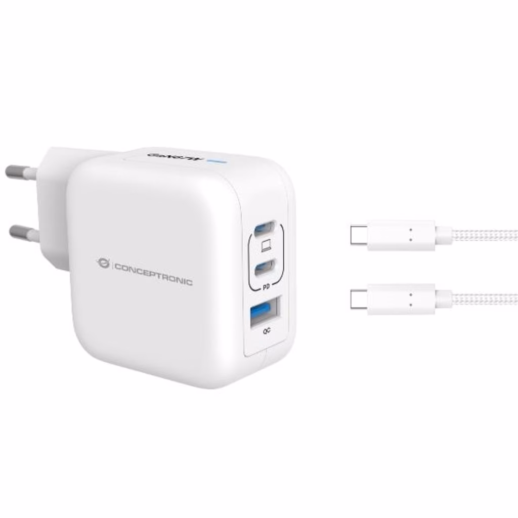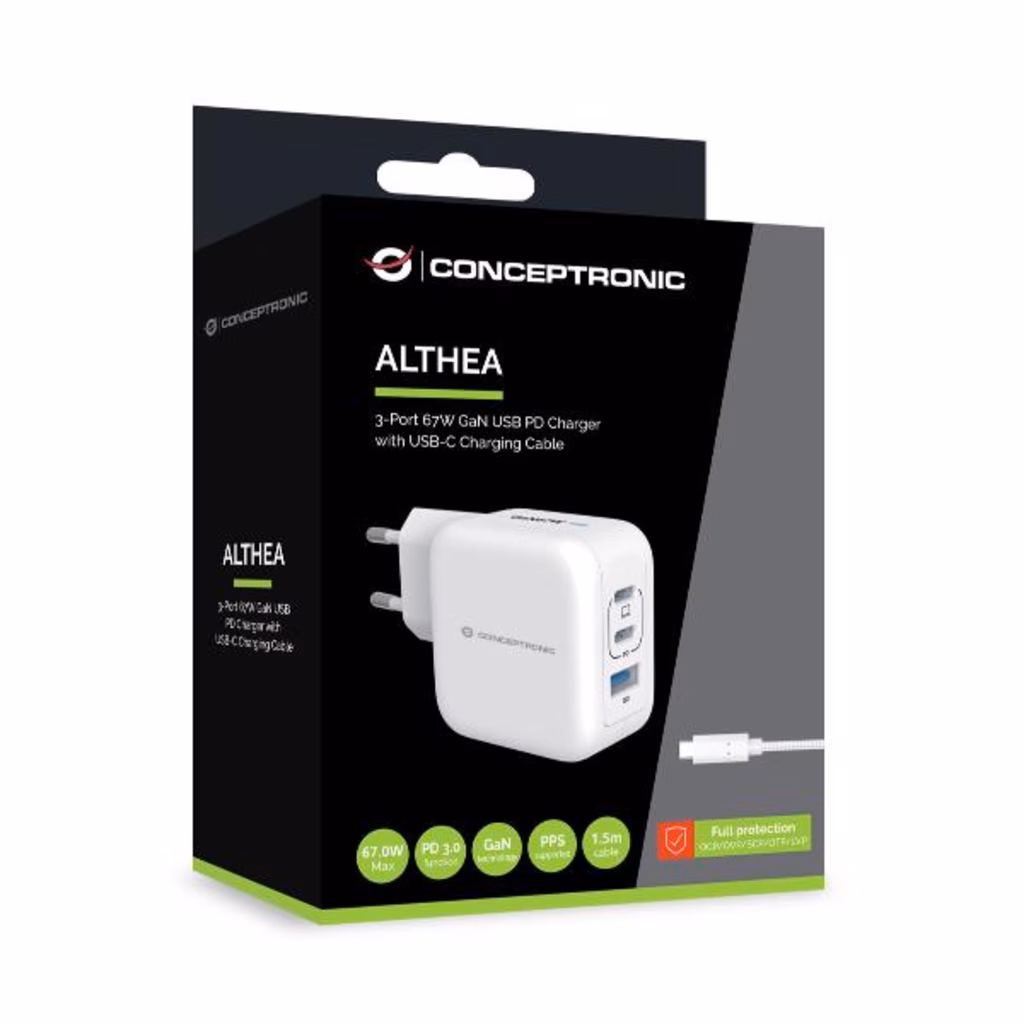 Caricabatterie a 3 porte PD (1x USB e 2x USB-C) con cavo CONCEPTRONIC ALTHEA17W 67W colore bianco