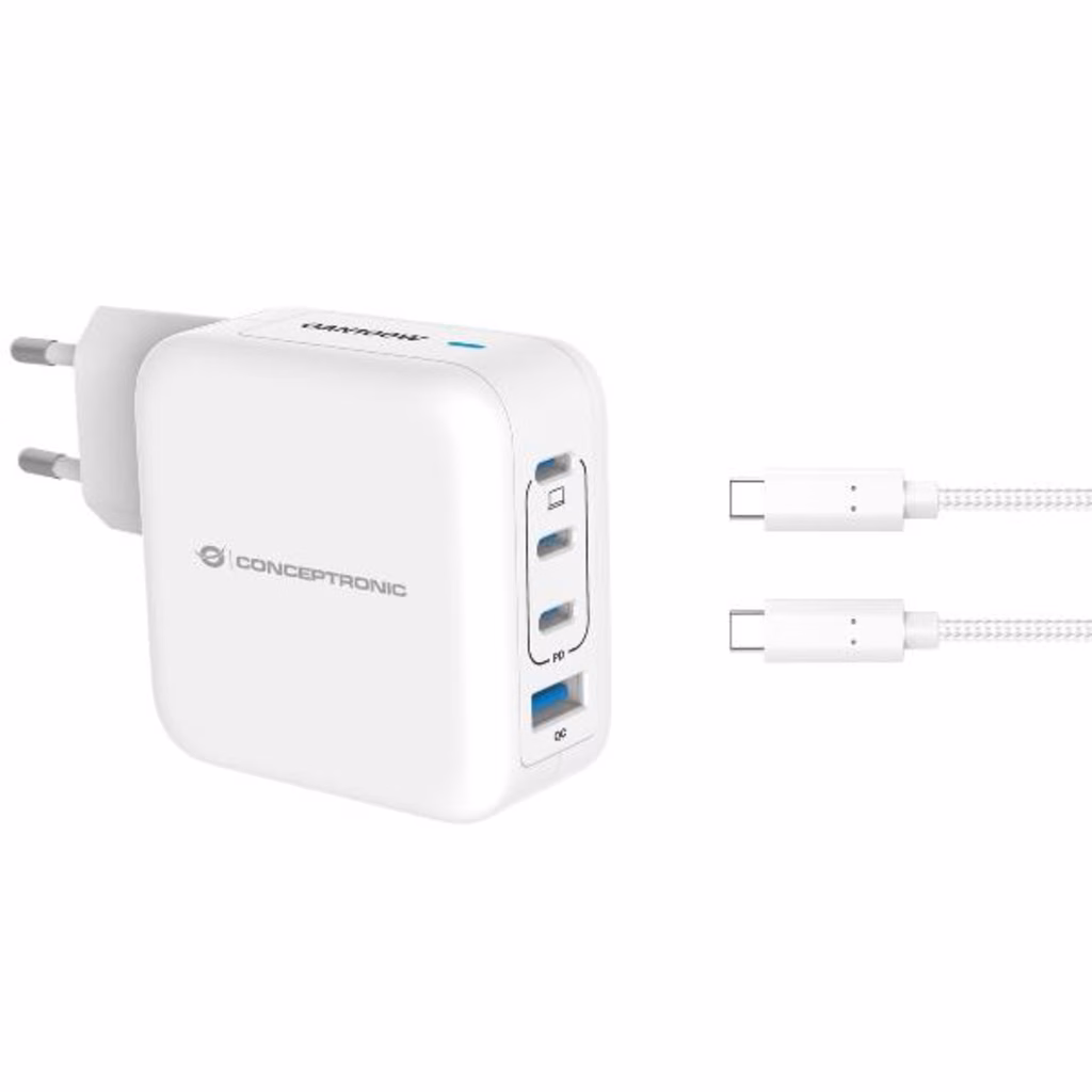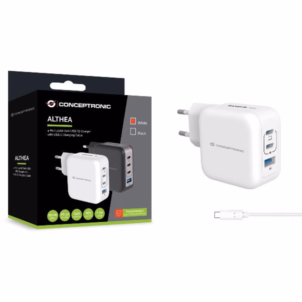 Caricabatterie a 4 porte PD (1x USB e 3x USB-C) con cavo CONCEPTRONIC ALTHEA18W colore bianco