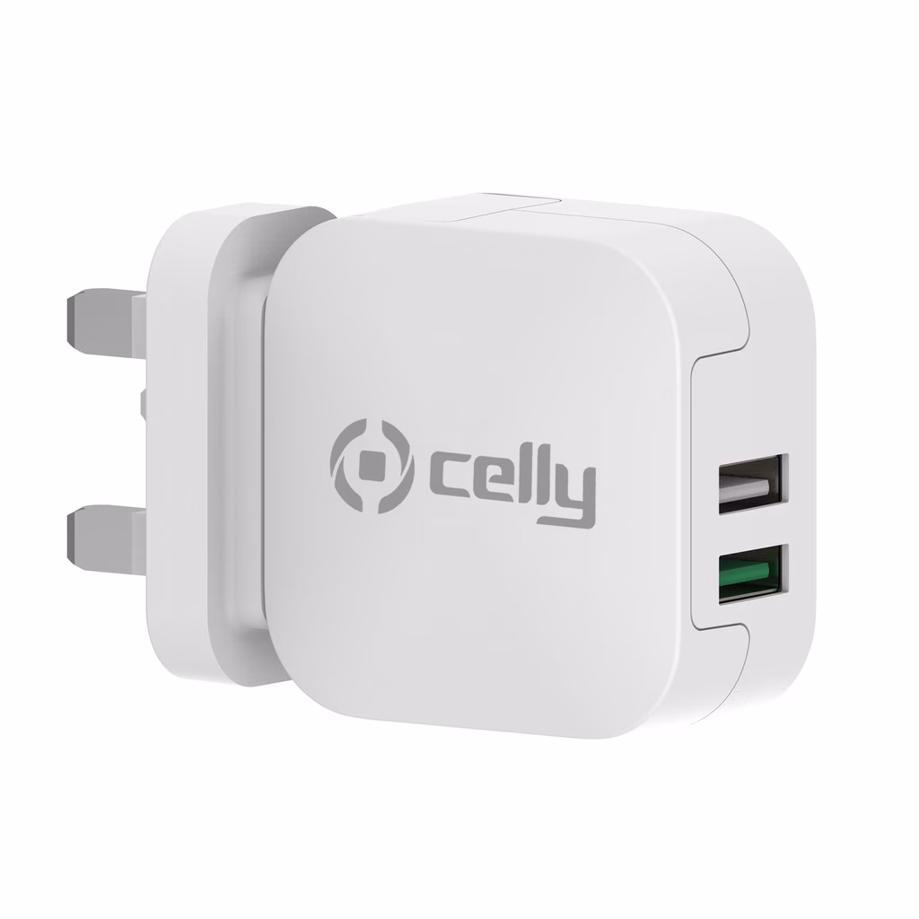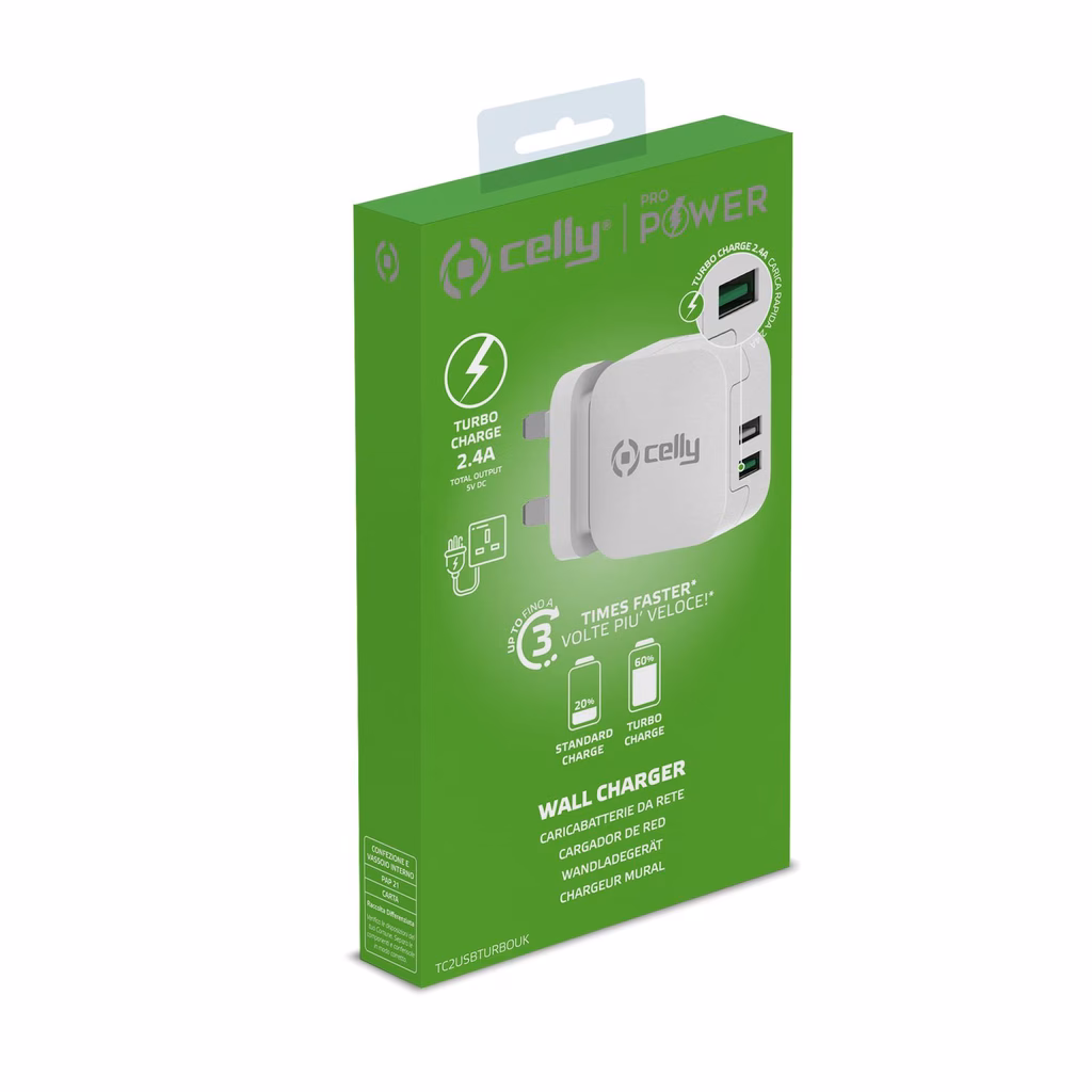 Caricabatterie bianco CELLY TC2USBTURBO - 17W 2 USB Wall Charger UK plug TU TC2USBTURBOUK