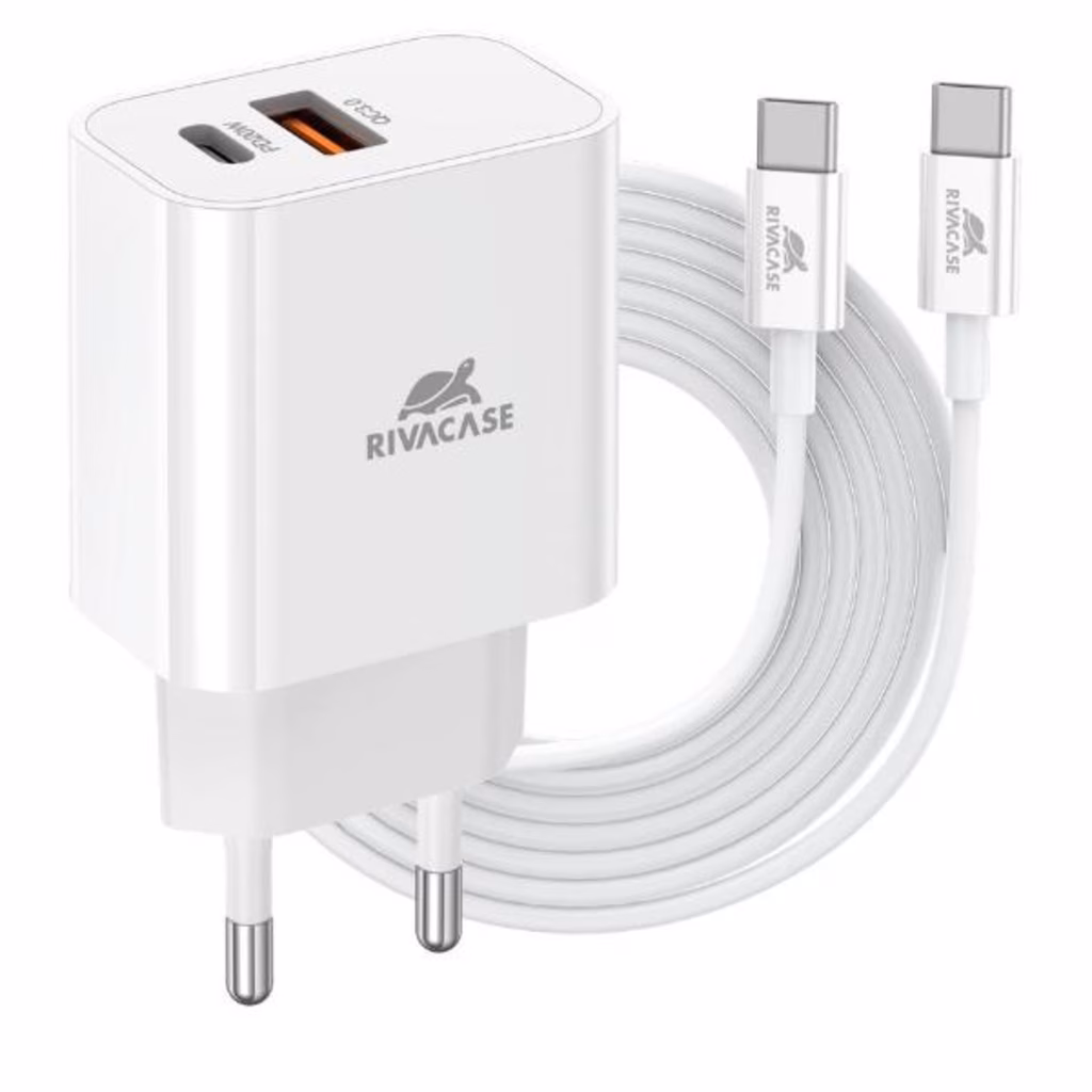 RIVACASE PS4192 Power Delivery 20W wall chargerProduct Features: Type-C & USB wall charger Power Delivery 20W Quick Charge 2.0/3.0 Support Huawei FCP, Samsung AFC FAST charger for iPhone (iPhone 8 and newer) Outer shell is made of non-flammable and durable plasticSpecifications: Input: 110 - 240 V, 50-60 Hz. Output:USB-C 5V 3A, 9V 2.22A, 12V 1.67AUSB-A 5V 3A, 9V 2A, 12V 1.5ASimoultaneously USB-C + USB-A 5V 3A MAXDimensions: 80 ? 42 ? 28 mm.Colour: white.USB-C to USB-C 1 m cable (up to 3A) included