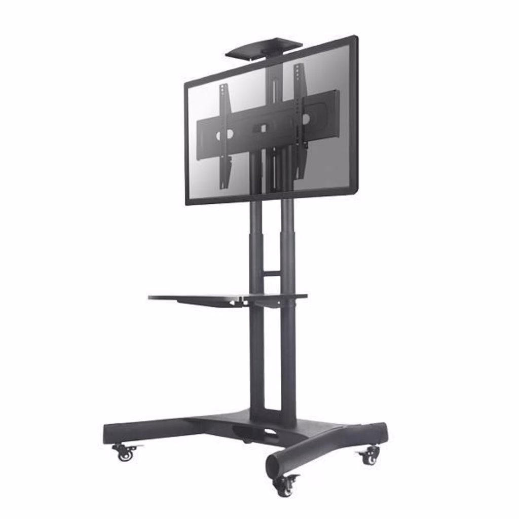 Il supporto a pavimento NewStar, modello NM-M1700BLACK è un mobiletto portatile per schermi LCD/LED/Plasma fino a 75" (191 cm) con altezza regolabile da 103 a 153 cm.