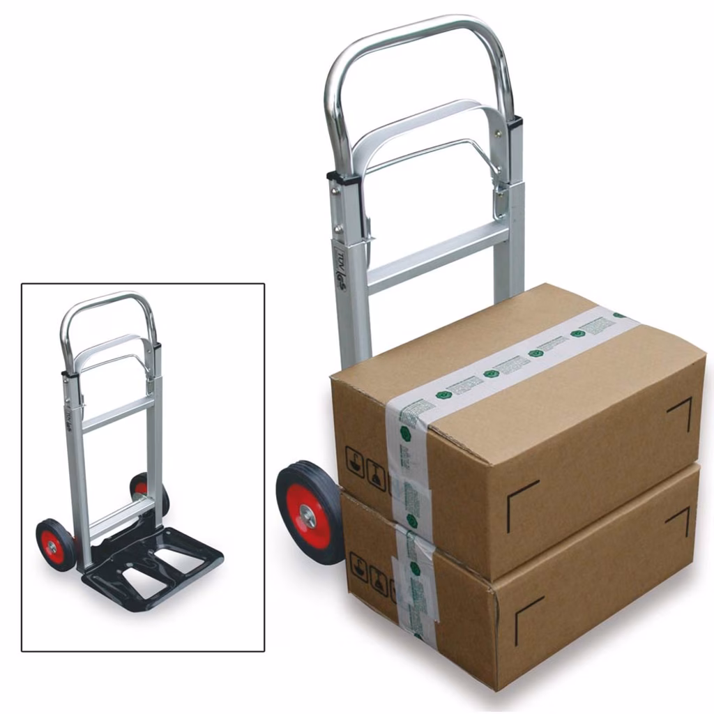 Carrello in alluminio pieghevole - dimensioni base pieghevole cm 35,5x24,5 - altezza manico allungabile da cm 75 a cm 110 - ruote pneumatiche da mm 150