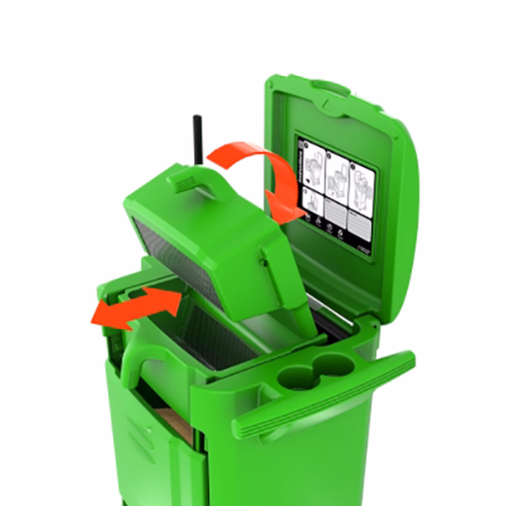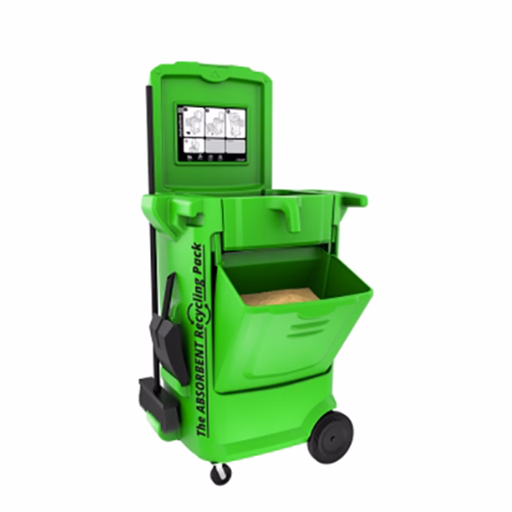 Kit composto da materiale assorbente altamente riciclabile e carrello setacciatore attrezzato nuovo concetto di pulizia tutto-in-uno - il toucan pack è un carrello mobile tutto-in-uno, che stocca, distribuisce e ricicla il suo assorbente fibercan+. Permette ai professionisti di rispondere in modo efficace ed economico ai problemi di sversamenti nelle officine. Grazie alla sua struttura microalveolare, il fibercan+ incapsula i liquidi per separarli dall'assorbente riutilizzabile mediante un sistema di setacciatura. Sistema 8 volte più economico di una normale polvere assorbente - dimensioni 1100x796x651 mm