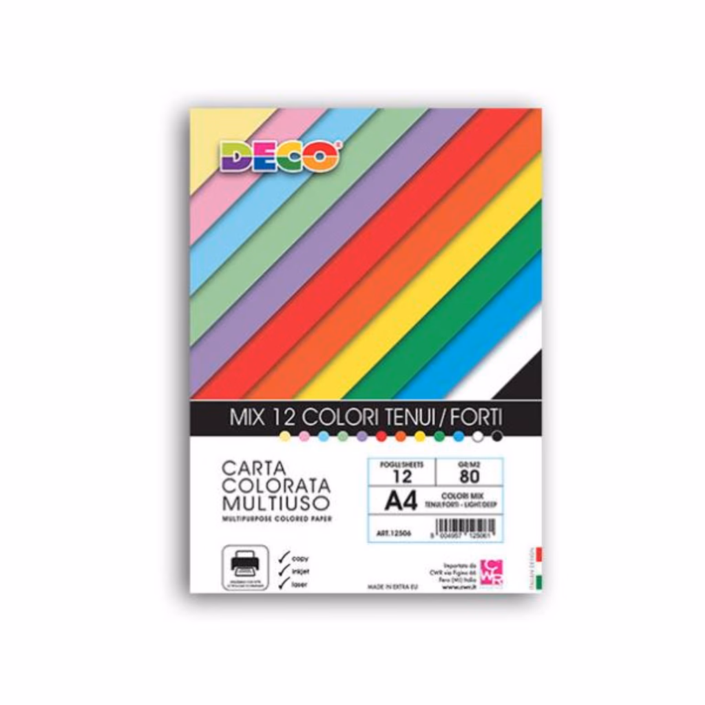 Assortimento 12 colori tenui e forti. Formato cm. 21 x 29.7