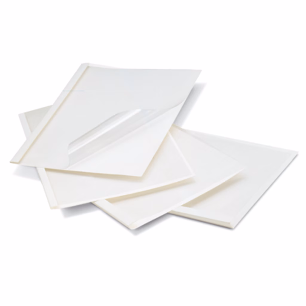 Cartelline per termorilegatura con fronte trasparente e cartoncino bianco di 220 g/m² sul retro