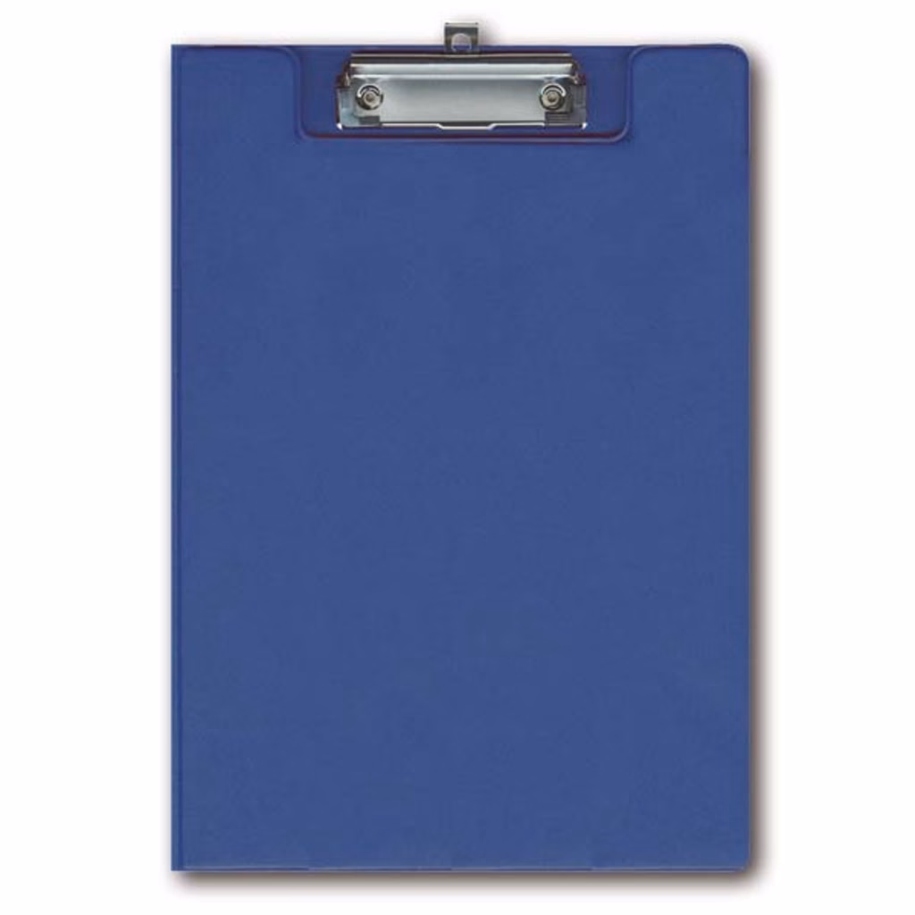 Cartella portablocco in cartone rigido rivestito in pvc, portapenne e tasca interna in cartone rivestito di plastica, con molla di fissaggio in metallo