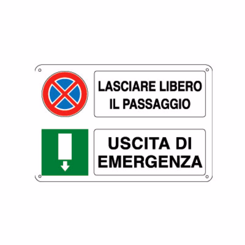 Cartello alluminio 30x20 - lasc.lib.pass. + usc.emer.