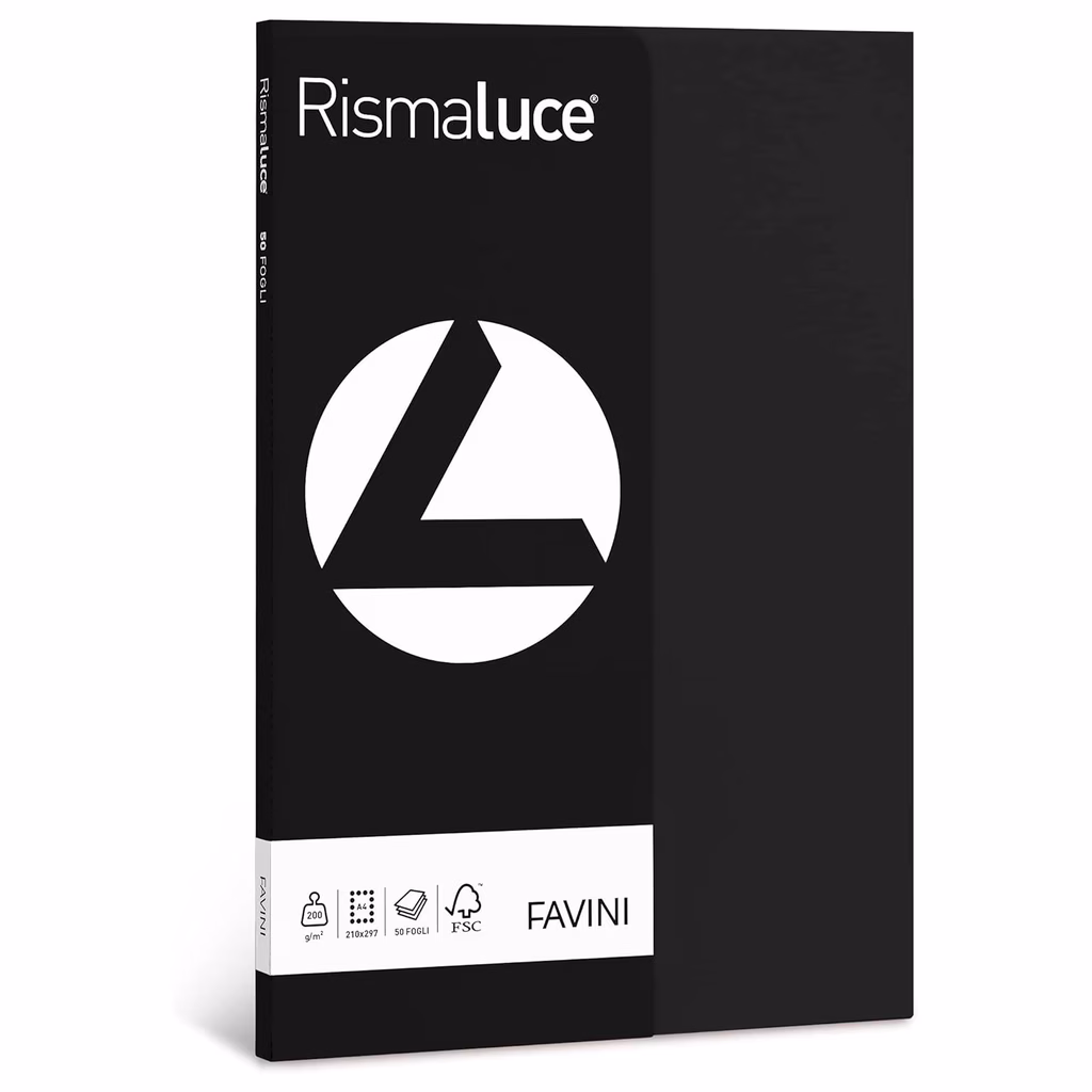 Cartoncino FAVINI Rismaluce A4 g200 nero risma da 50 fogli