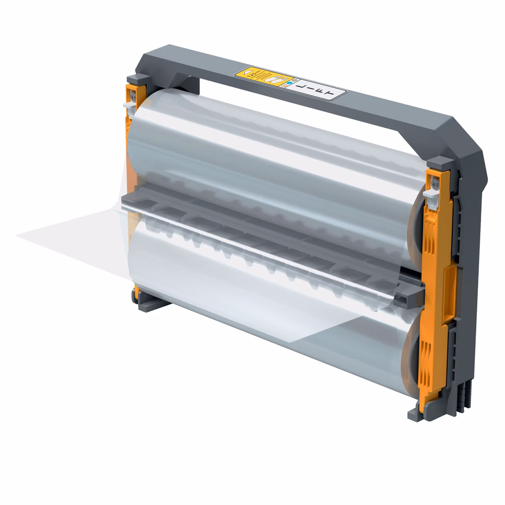 Bobina con caricamento facile adatta per la plastificatrice automatica GBC Foton 30. Basta aprire il coperchio, sollevare e sostituire la bobina da 125 micron. Plastifica fino a 150 fogli A4.