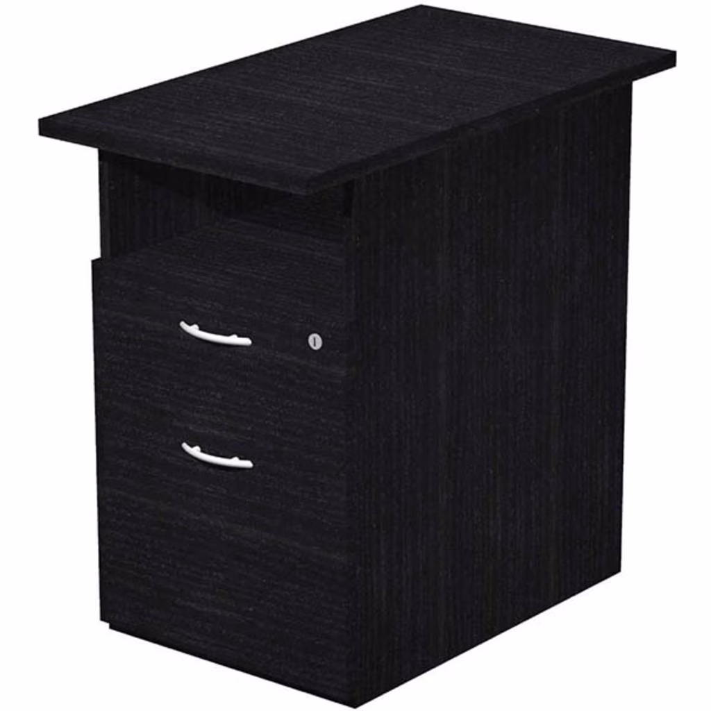 Cassettiere alte da affiancare alle scrivanie al lato di L80 cm nelle postazioni compact con sagomatura. Cassetti con guide metalliche e fermo a fine corsa. Modello da L43 P80 H72 cm con un vano a giorno, 1 cassetto con serratura e 1 cassetto classificatore per cartelle sospese interasse 33 cm.
