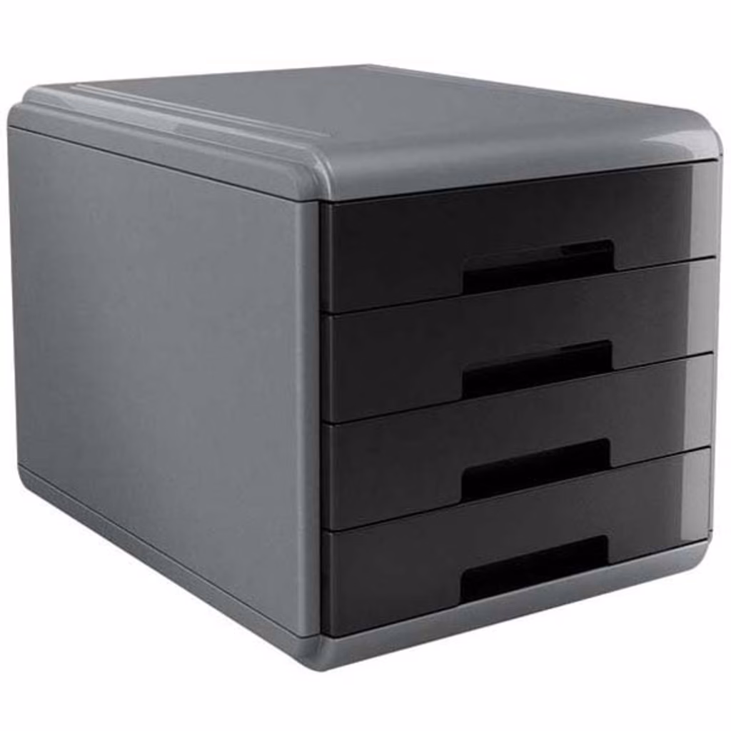 Nella gamma MyDesk, design e funzionalità si sposano perfettamente, l'uno al servizio dell'altra, per dare vita a oggetti di qualità e stile - scocca in polistirolo e cassetti in materiale infrangibile - 4 cassetti scorrimento silenziato, blocco di fine corsa, foro sulla base per una presa agevole dei documenti - accostabili e sovrapponibili con stabilità grazie alle corsie integrate