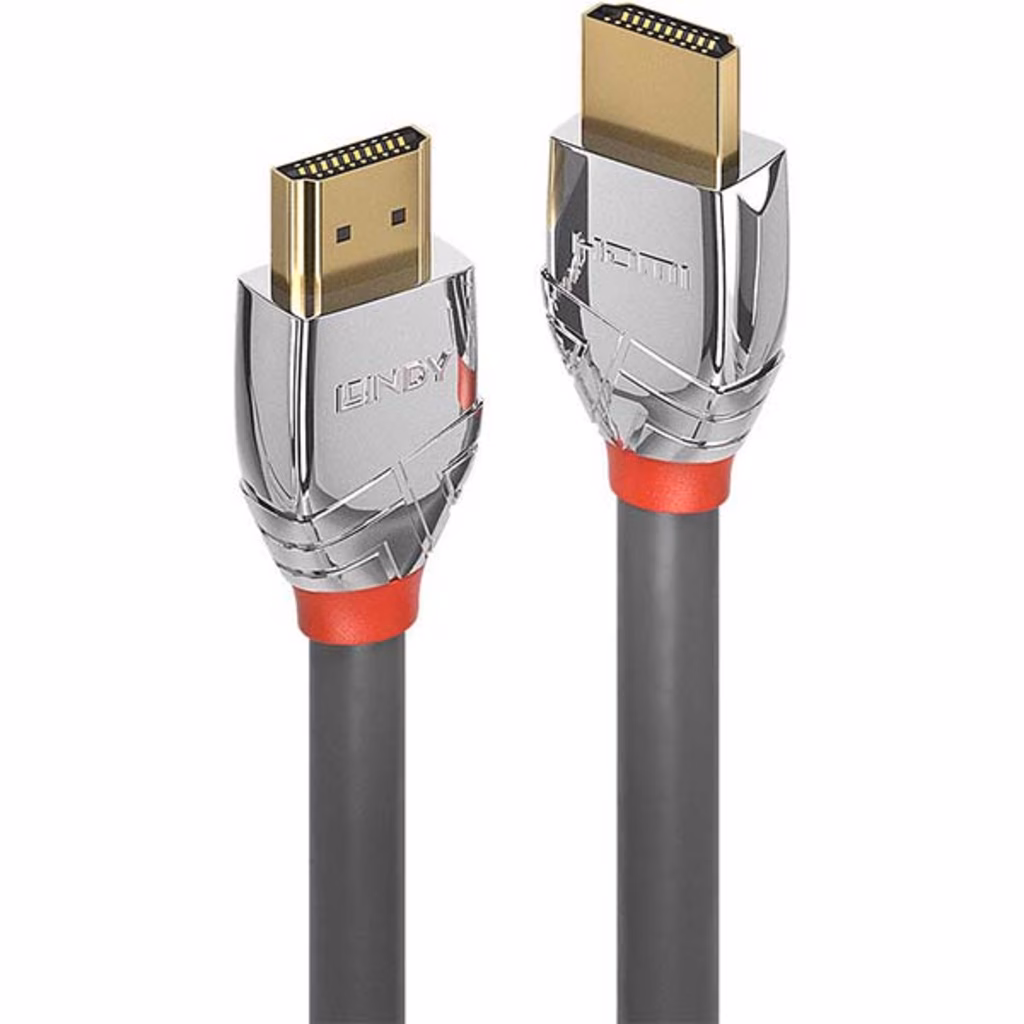 Cavo HDMI 2.0 Standard di alta qualità e design ricercato Supporta risoluzioni UHD fino a 4096x2160@60Hz 4:2:0 8bit Connettori e contatti placcati oro 24K, guscio in ABS cromato Cavo con tripla schermatura, resistente alla corrosione, conduttori in rame stagnato 26AWG HDMI 2.0, 3D, 4K, 10.2Gbps, HEC, ARC, CEC, Dolby True HD, DTS-HD Master Audio; certificato HDMI ATC; 10 anni di garanzia Dal concetto di connettività delle nuove linee sviluppate da Lindy nascono i cavi HDMI High Speed Cromo, caratterizzati da connettori cromati e contatti placcati oro per un mix di prestazioni e design di alto livello. I cavi HDMI High Speed Cromo Line sono realizzati con conduttori 26AWG con tripla schermatura per performance ottimali e resistenza alla corrosione. Contatti e connettori sono placcati oro 24K per mantenere la massima integrità del segnale e affidabilità. Supportano risoluzioni UHD fino a 4K 4096x2160@60Hz 4:2:0 8bit, incluso segnali audio 32 canali e Dolby True HD. I cavi Cromo Line hanno i connettori in ABS con il caratteristico design cromato per dare un tocco di stile in applicazioni commerciali e domestiche. Le specifiche HDMI 2.0 supportano una larghezza di banda di 10.2Gbps con cavi lunghi fino a 5m. Cavi lunghi fino a 5m sono classificati come high speed, cavi di lunghezze superiori a 5m sono classificati come standard. Disponibili in diverse metrature: 0.3m, 0.5m, 1m, 2m, 3m, 5m, 7.5m e 10m