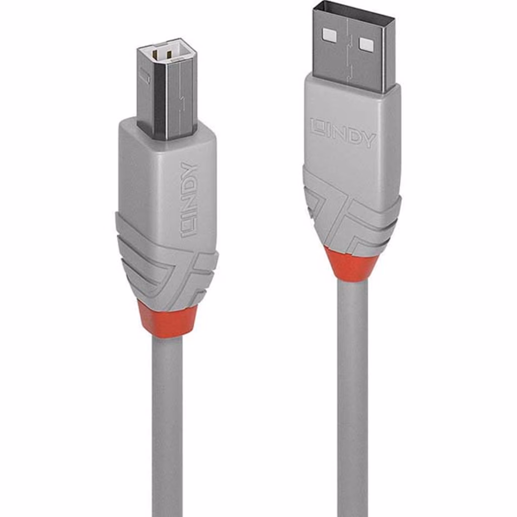 Cavo USB 2.0 Tipo A a B professionale per installazioni AV e IT ad alte prestazioni Supporta velocità di trasferimento dati fino a 480Mbps Guscio in PVC con connettori in nichel e contatti placcati oro Cavo grigio con doppia schermatura, conduttori in rame stagnato resistenti alla corrosione USB 2.0, 480Mbps; 10 anni di garanzia Dal concetto di connettività delle nuove linee sviluppate da Lindy nascono i cavi USB 2.0 Tipo A a B Anthra Line, la soluzione professionale per installazioni AV e IT ad alte prestazioni. I cavi USB 2.0 Anthra Line sono realizzati con conduttori in rame con doppia schermatura per performance ottimali e resistenza alla corrosione. Connettori in Nichel e contatti placcati oro per mantenere la massima integrità del segnale e affidabilità. Supportano velocità di trasferimento dati fino a 480Mbps per il trasferimento rapido e semplice di grandi volumi di dati. Versione con cavo di colore grigio. Disponibili in diverse metrature: 0.2, 0.5m, 1m, 2m, 3m e 5m