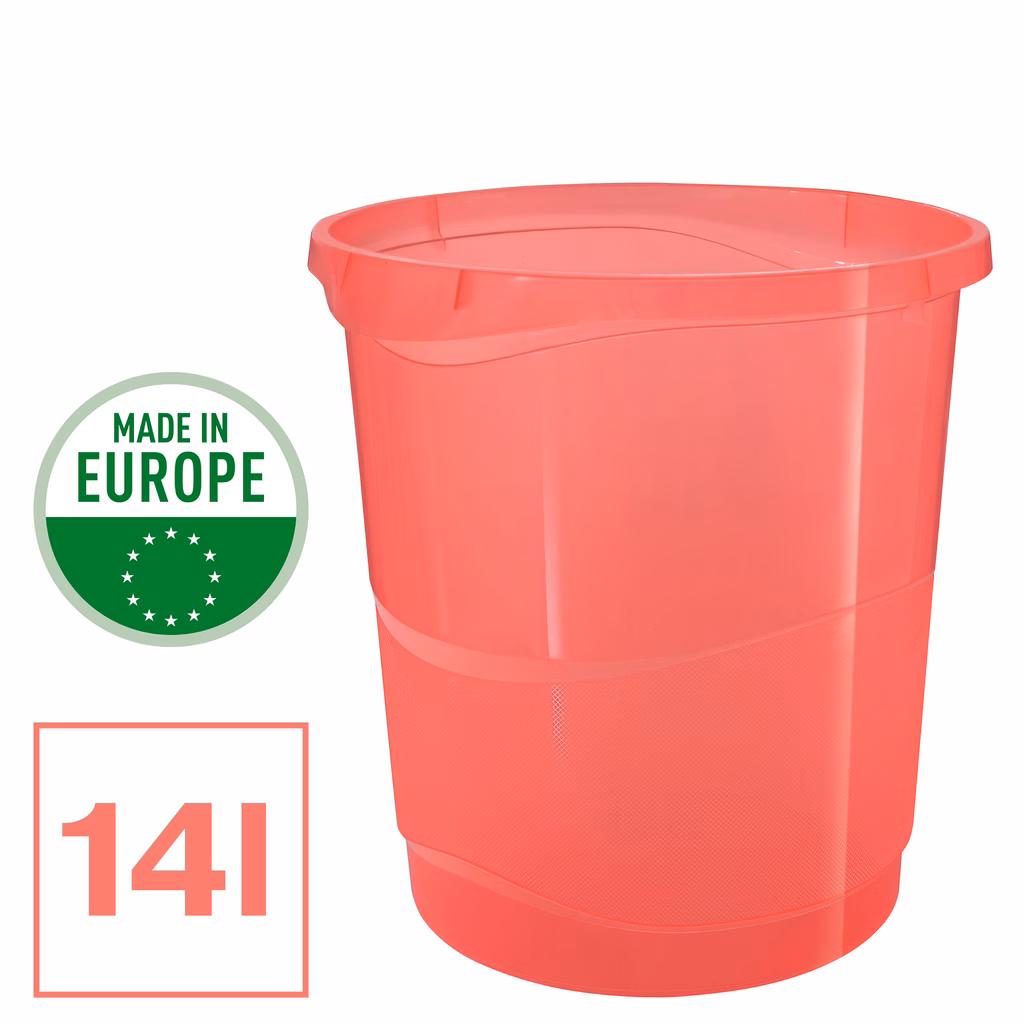 Cestino gettacarte traslucido per la casa e l'ufficio. Capacità di 14 litri. Design fresco e moderno. Abbraccia i colori brillanti della natura per creare uno spazio di lavoro positivo con la gamma Colour'Breeze di Esselte. Una fresca brezza nella tua vita!