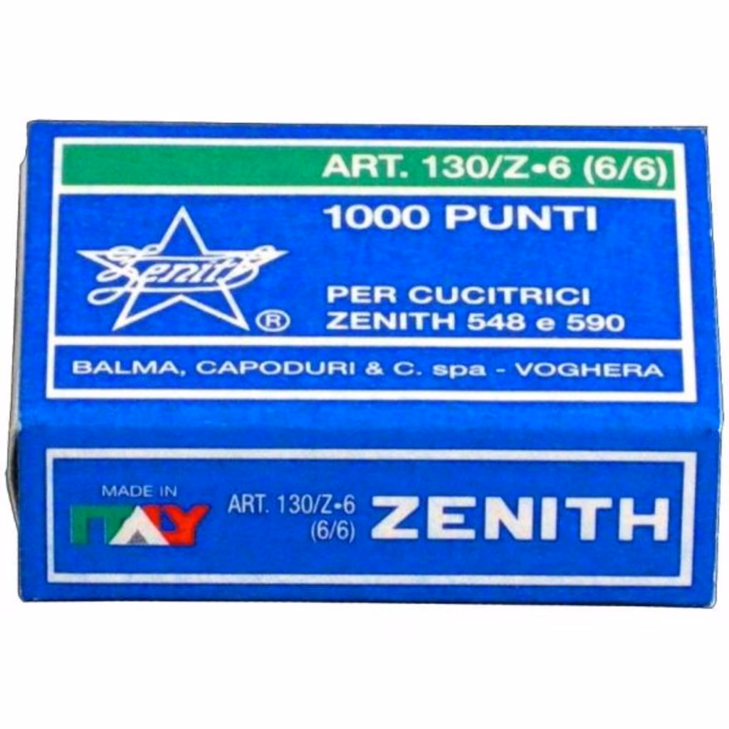 I punti metallici "ZENITH" si distinguono per la qualità del filo e per l'affilatura delle estremità delle gambine, accorgimento che ne garantisce una migliore penetrazione.