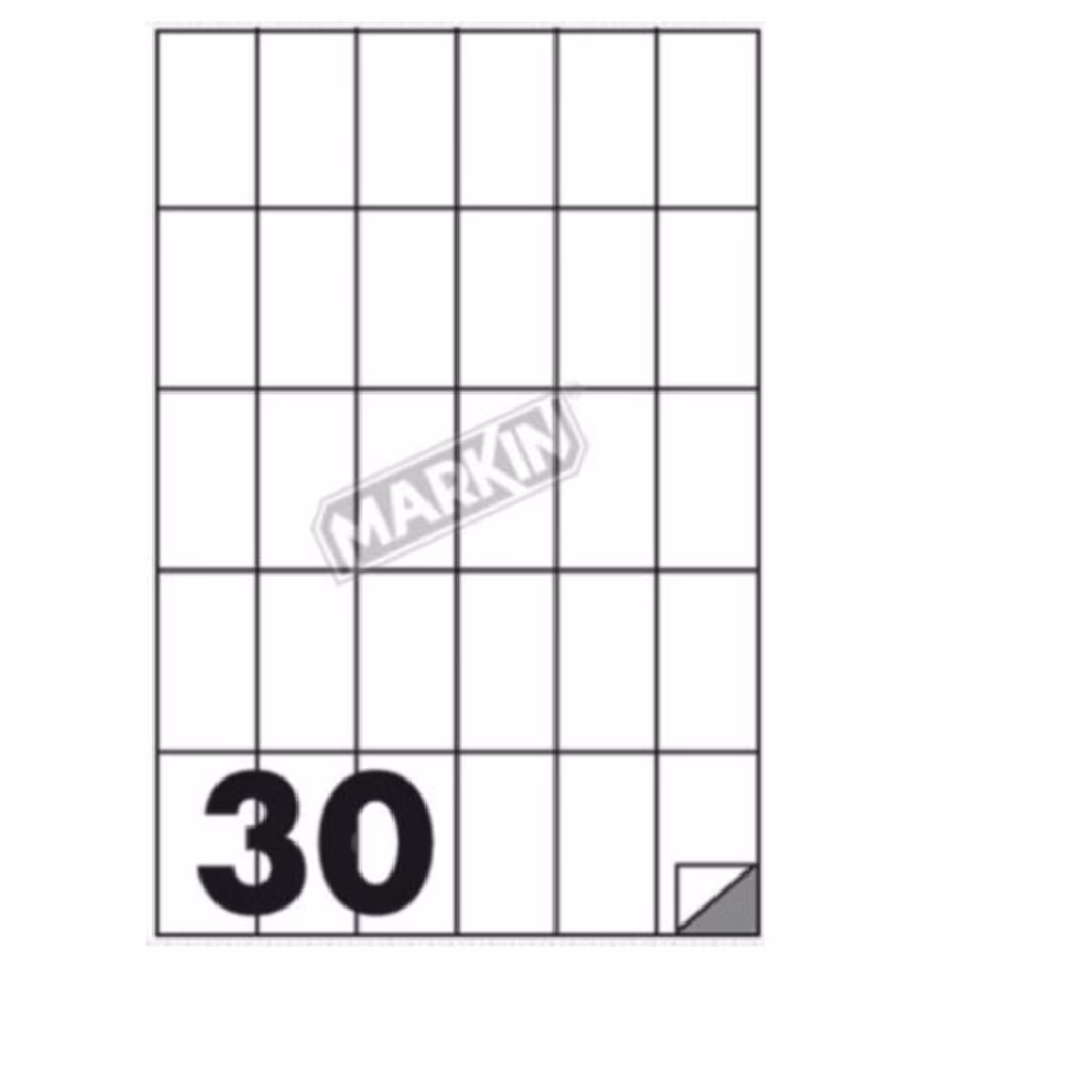 CARATTERISTICHEColore: biancoMisure: 35x59 mmGrammatura: 70grFogli/Conf: 100Eti per conf: 3000Eti per foglio: 30Adesivo: permanente