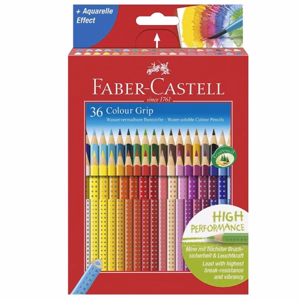 Astuccio di cartone con 36 matite colorate Colour GripLe matite colorate colour Grip sono ideali per i bambini grazie al fusto ergonomico triangolare e all'impugnatura Soft-Grip brevettata. Questo assicura il non affaticamento della mano durante il disegno. L'alta concentrazione di pigmenti della mina rende i colori brillanti. I colori acquerellabili danno risultati fantastici: semplicemente passando un pennello bagnato sul disegno colorato si possono creare splendide sfumature acquerellate.