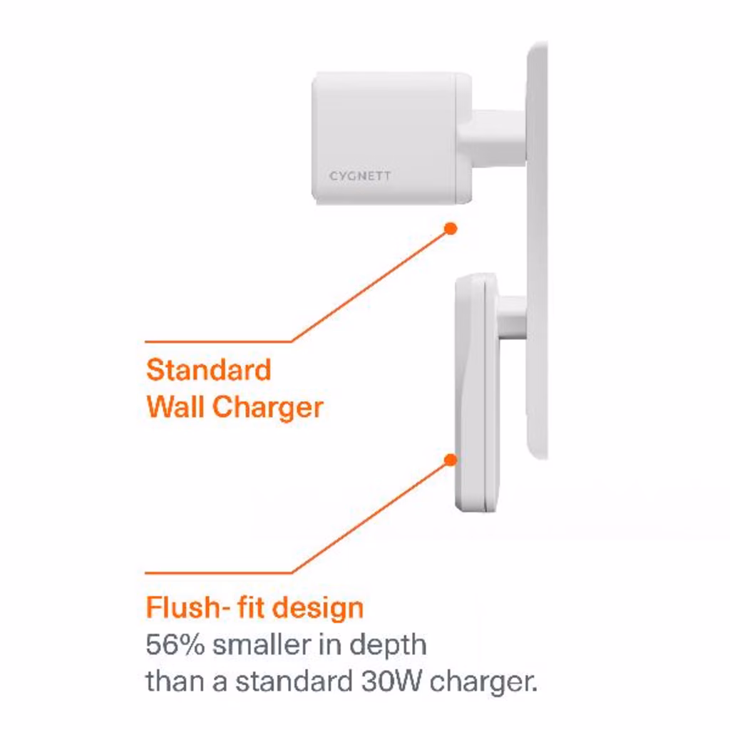 Dimensioni super-sottili: Ricarica anche negli spazi più ristretti. Con un design a filo, questo caricabatterie da parete Slim è il 56% più sottile in profondità rispetto al caricabatterie standard da 30W, in modo da poter alimentare ogni angolo della casa.