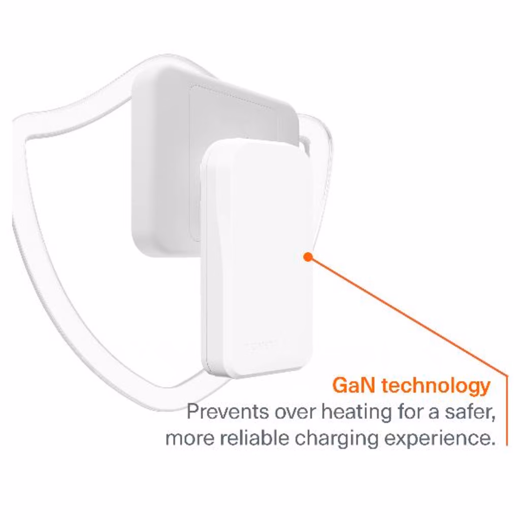Tecnologia GaN: La tecnologia GaN avanzata mantiene il caricabatterie da parete fresco per un'esperienza di ricarica più sicura e affidabile.
