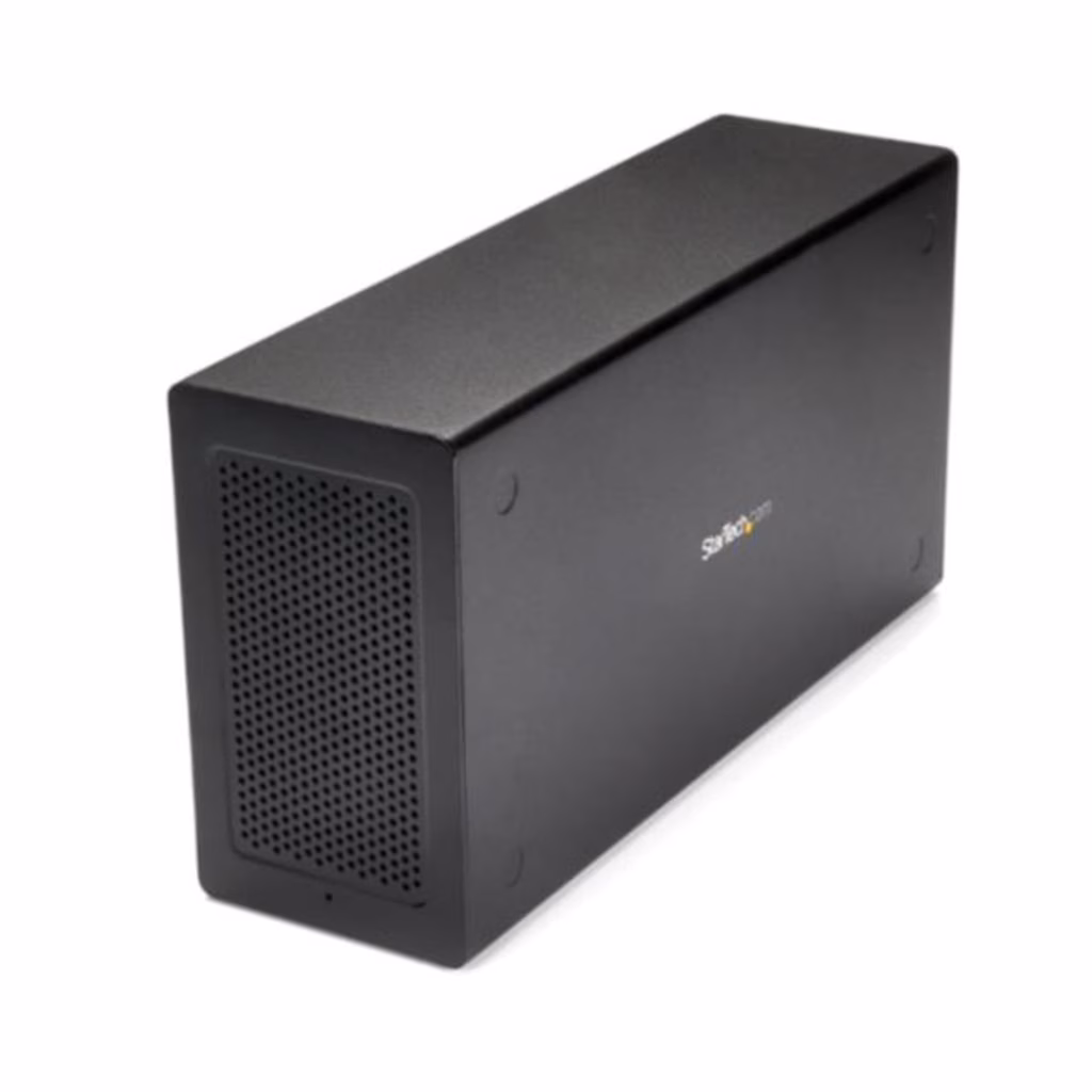 Il box PCIe esterno è caratterizzato da un'uscita DisplayPort dedicata che permette di aggiungere un altro display al computer laptop o desktop, e include una seconda porta Thunderbolt 3 (USB-C) da utilizzare per il collegamento di un display secondario. (Potrebbe essere necessario un adattatore video USB-C). Utilizzando più monitor in modalità estesa, è possibile lavorare con maggiore efficienza o svolgere più attività alla volta in meno tempo, senza dover continuamente riposizionare le varie finestre o i programmi aperti.