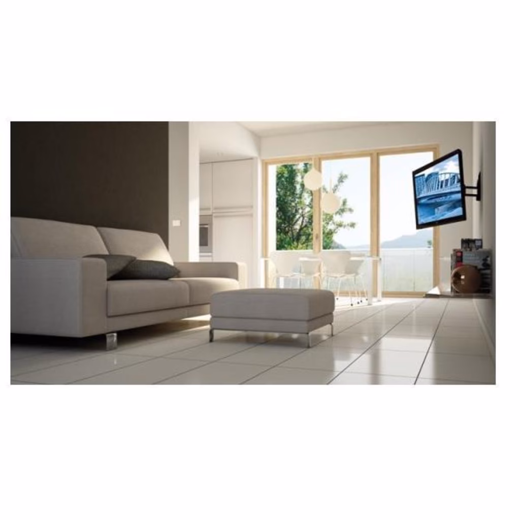 Questo supporto a doppia rotazione garantisce una visione ottimale mantenendo la TV centrata rispetto al punto di fissaggio, anche quando è chiuso. Prodotto al 100% in Italia, il supporto per TV a muro Meliconi offre qualità e durata, rendendolo una scelta affidabile per ogni esigenza.
