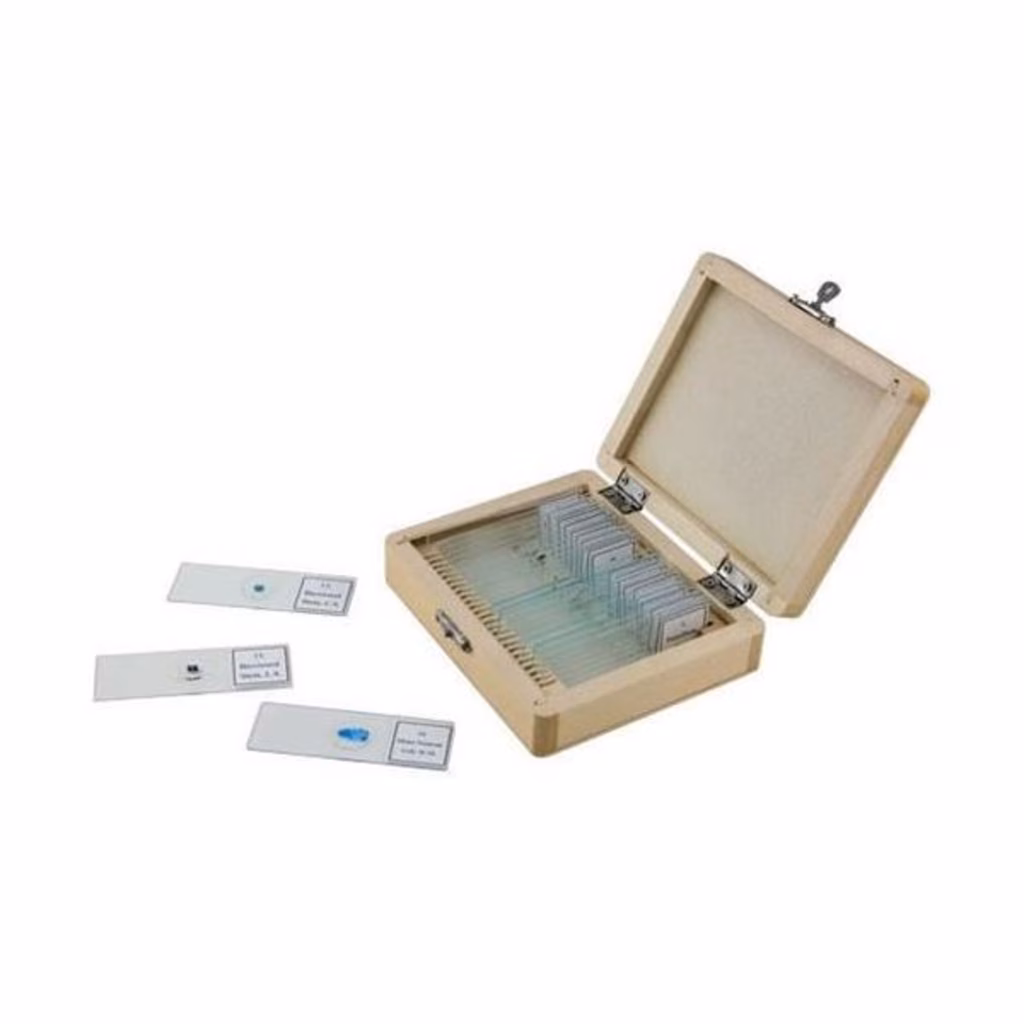 Set di 25 vetrini preparati per Microscopio contenuti in una pratica scatola di Legno. Contiene vetrini preparati con parti d’insetti, parti di piante, parti di animali, etc. utili per scoprire e sperimentare e garantisce molte ore di divertimento.