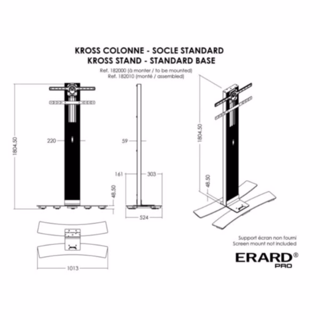 Colonna Kross per schermi fino a fino a 98" ideale per applicazioni di videoconferenza e telepresenza.Nata dall incontro fra due best-seller di casa Erard Pro, base Will e struttura XPO,