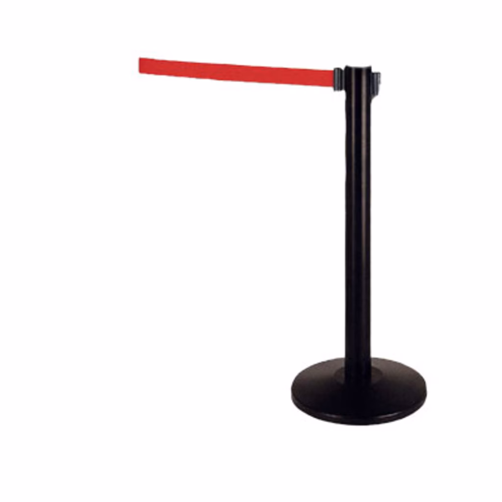 Colonnina segnapercorsi con base rotonda e cinta rossa, utilizzata nei posti pubblici e privati come guida per percorsi pedonali o come barriera (legge sulla privacy)