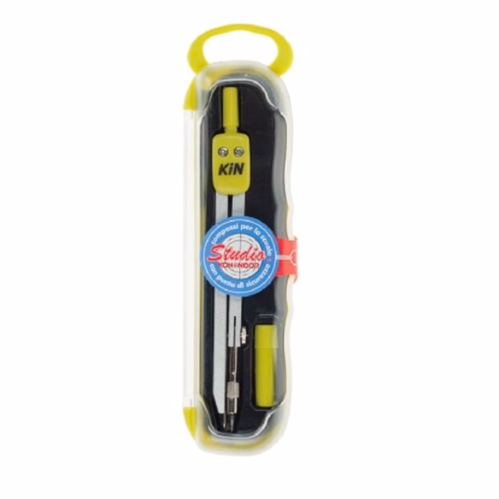Compassiera Studio 2 pezzi: compasso asta snodata e punte di ricambio. Adatto alluso scolastico, per scuole elementari e medie. Punta di sicurezza. Colori assortiti. FABBRICATI IN ITALIA.