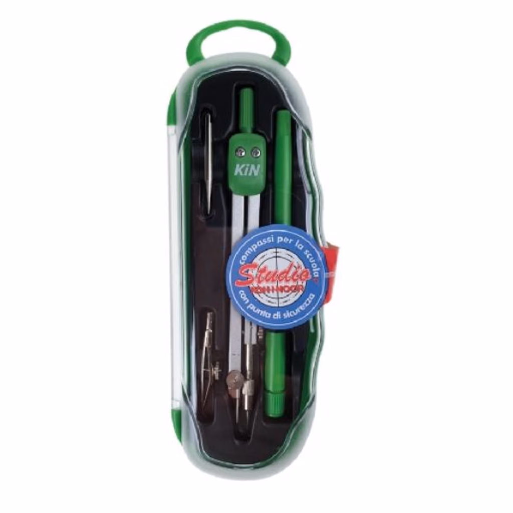 Compassiera Studio 5 pezzi: compasso asta snodata e accessori di ricambio. Adatto alluso scolastico, per scuole elementari e medie. Punta di sicurezza. Colori assortiti. FABBRICATI IN ITALIA.